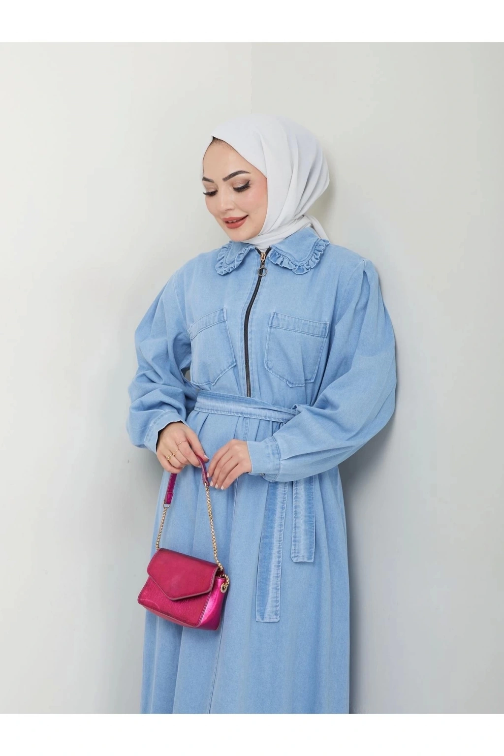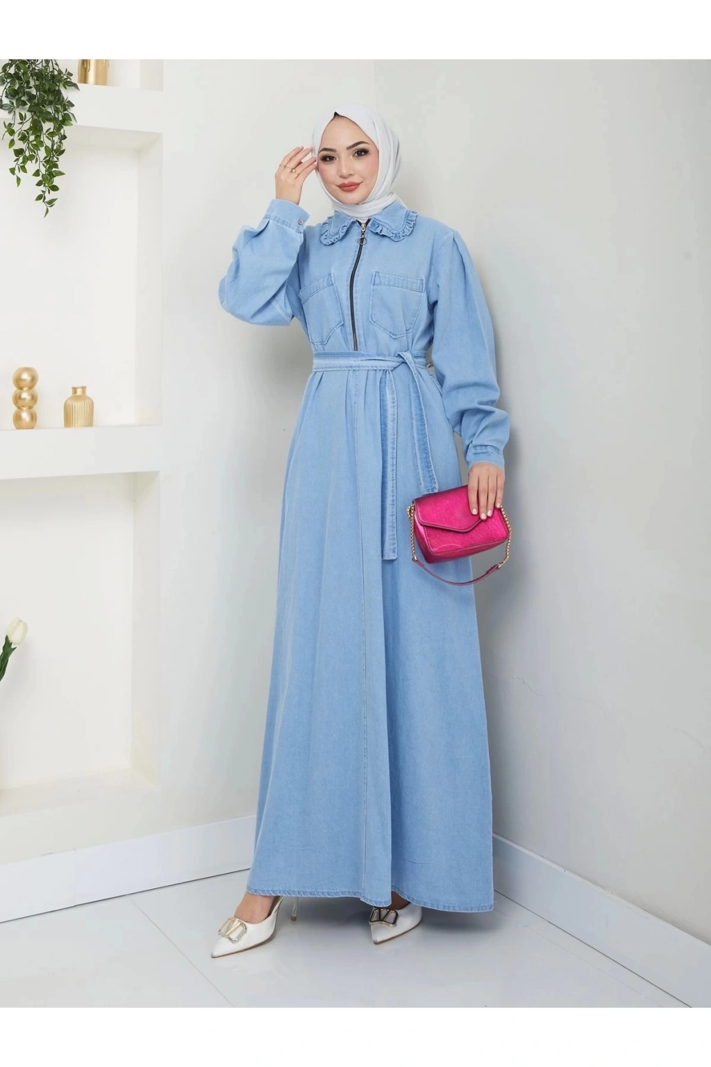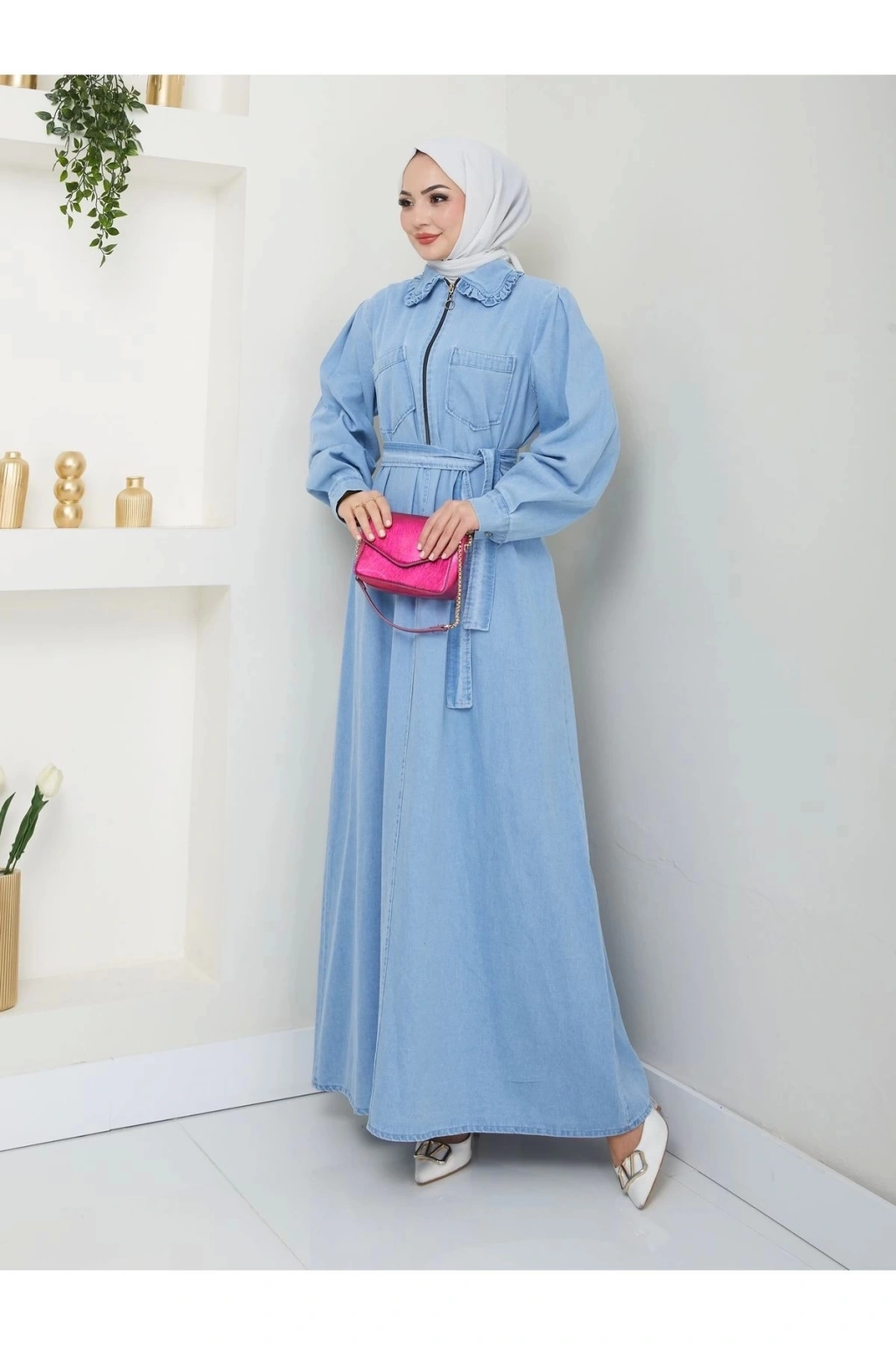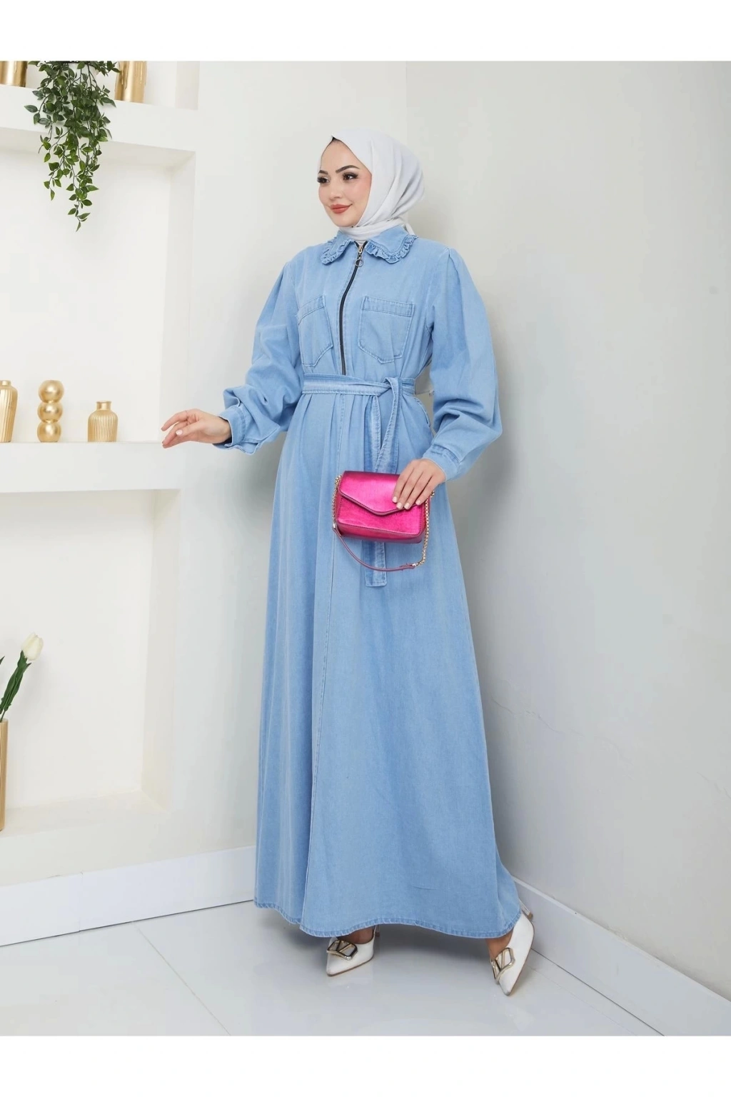 CEOLİ FERMUARLI TESETTÜR AÇİK KOT ELBİSE