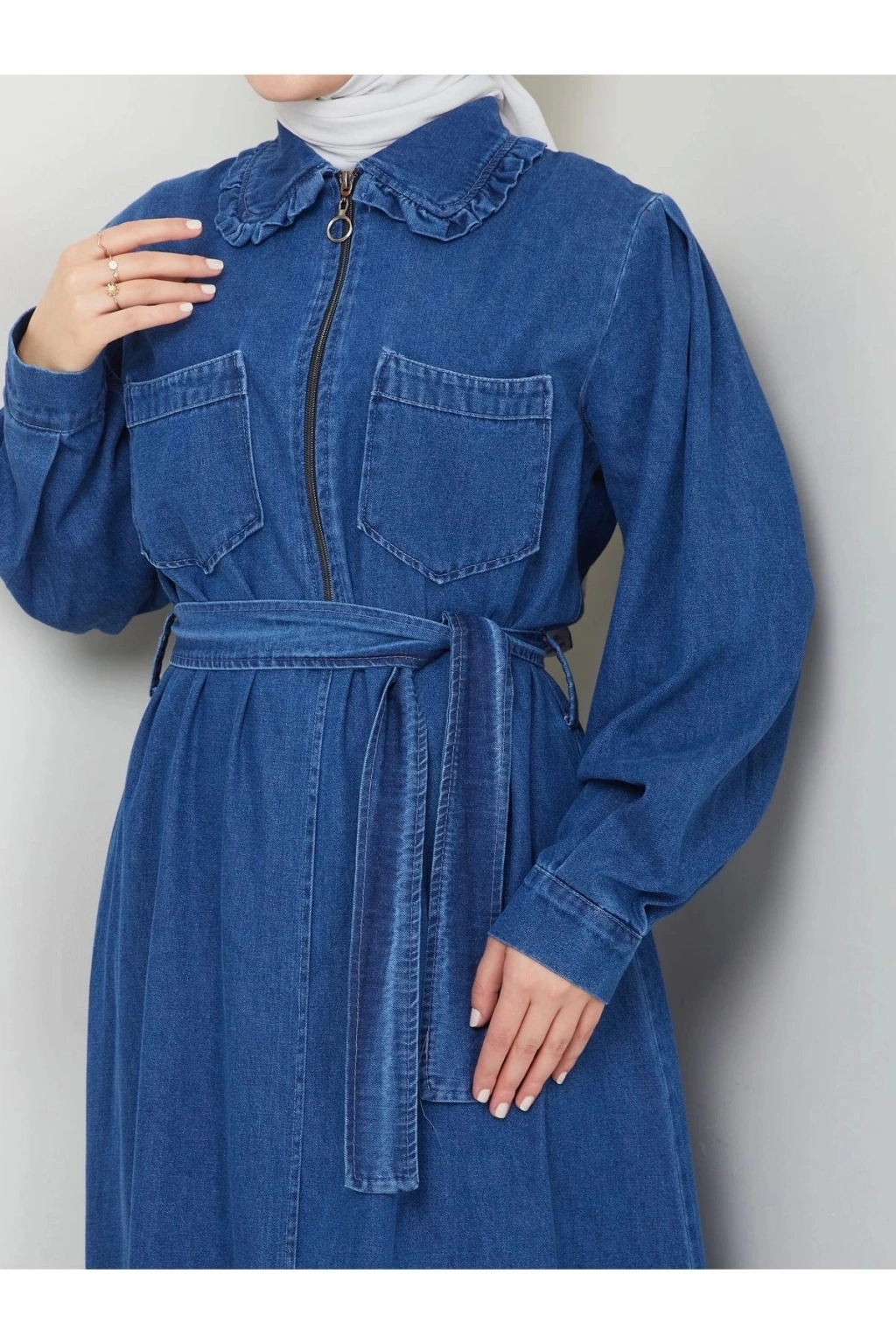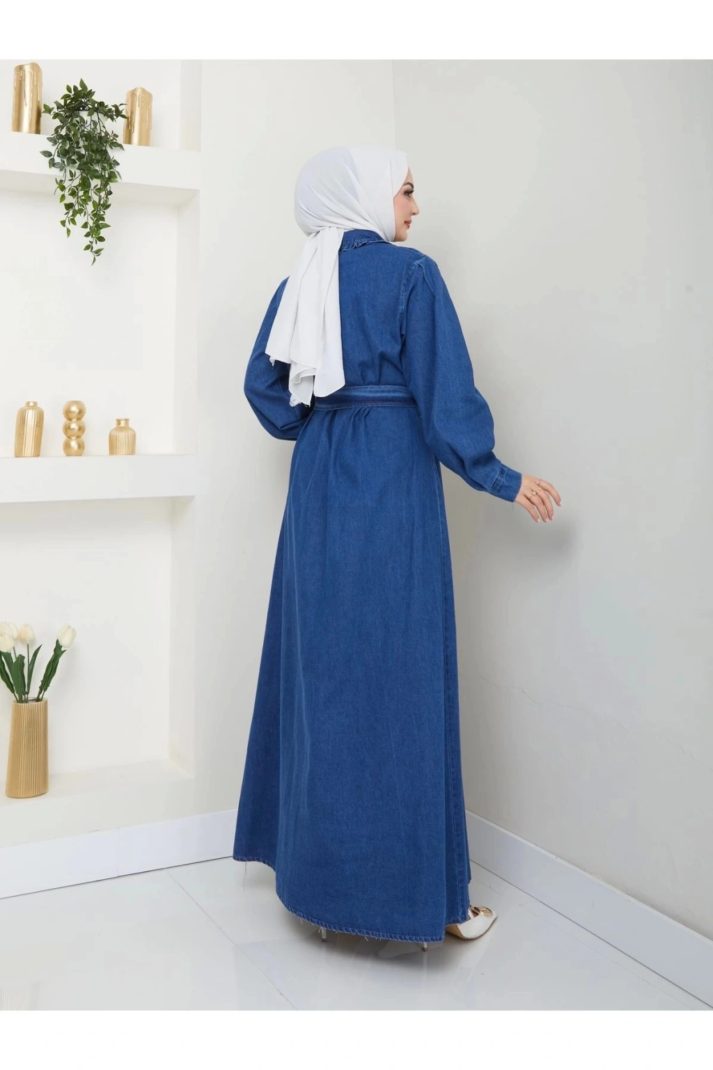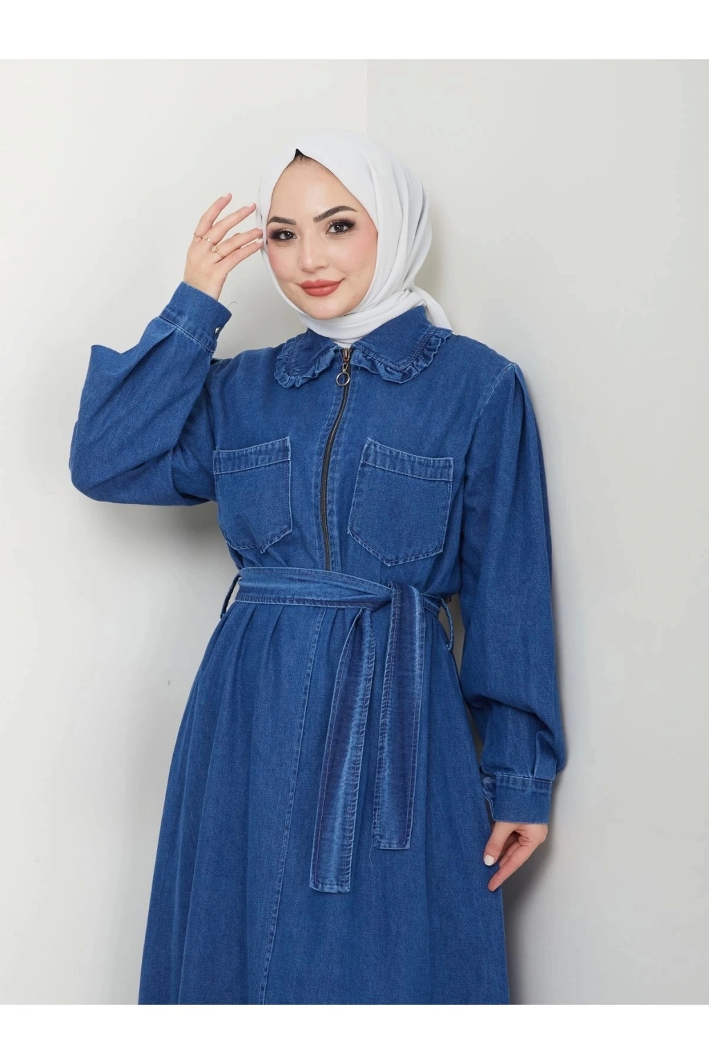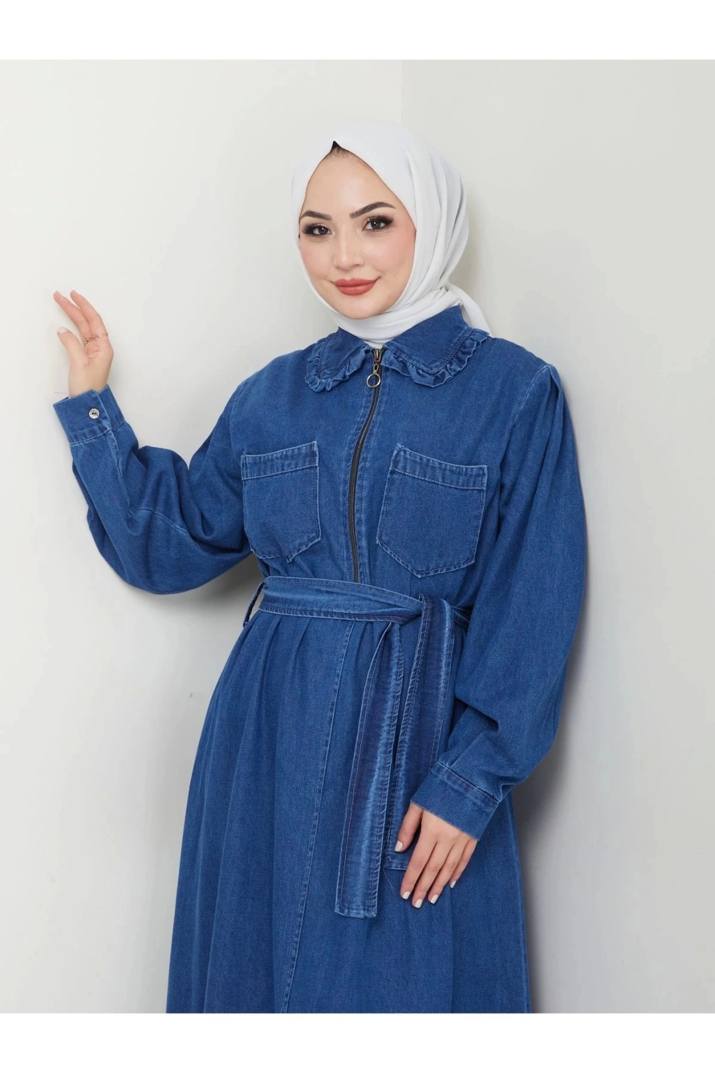 CEOLİ FERMUARLI TESETTÜR KOYU KOT ELBİSE