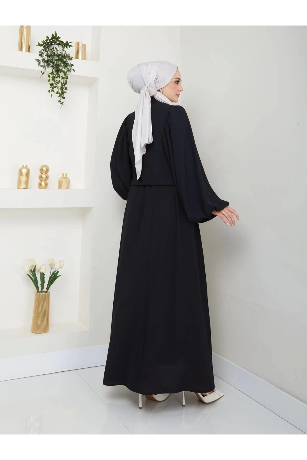 ETEKLI CEKETLI ÖNDEN BAĞLAMALI TESETTÜR TAKIM SİYAH