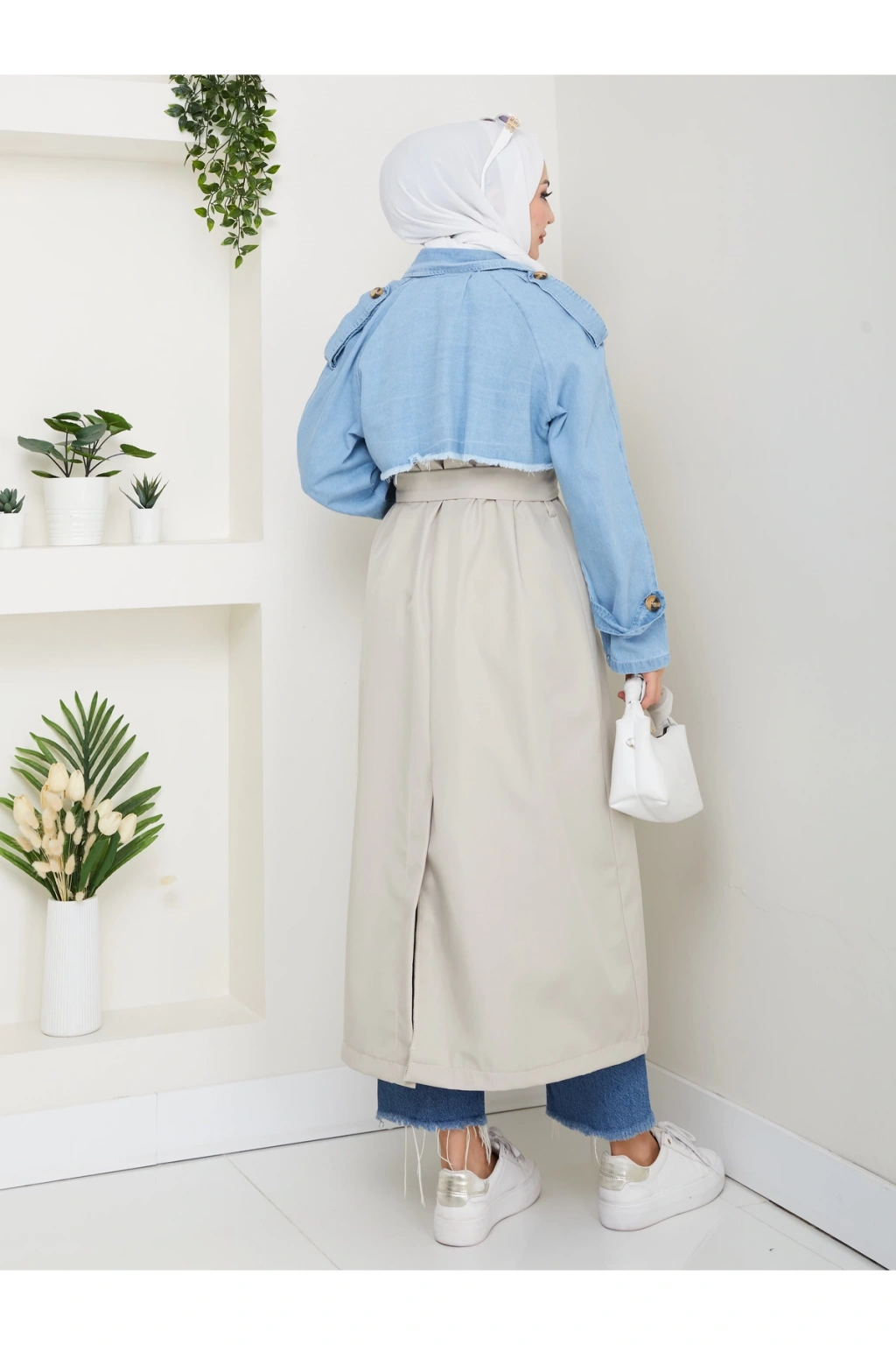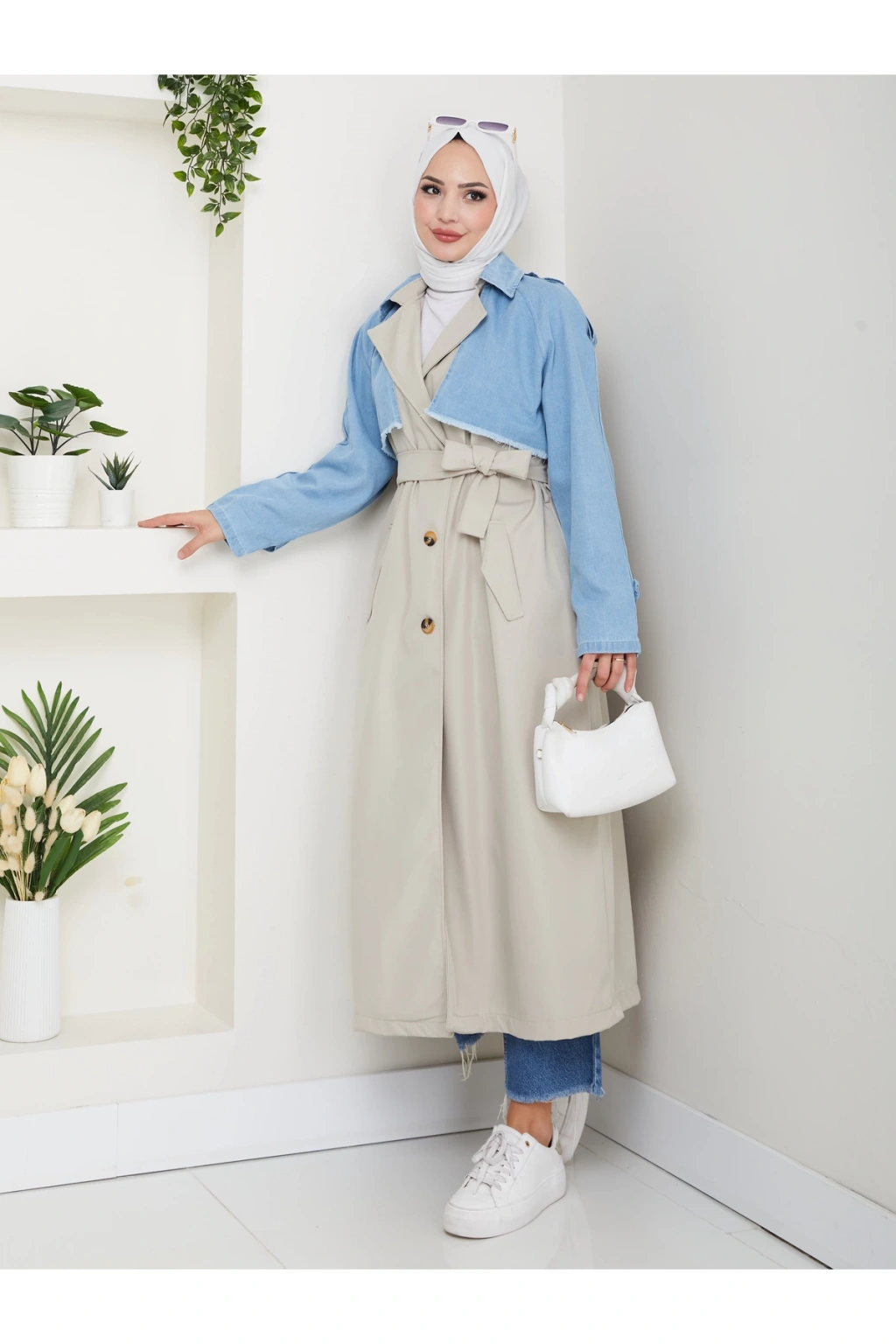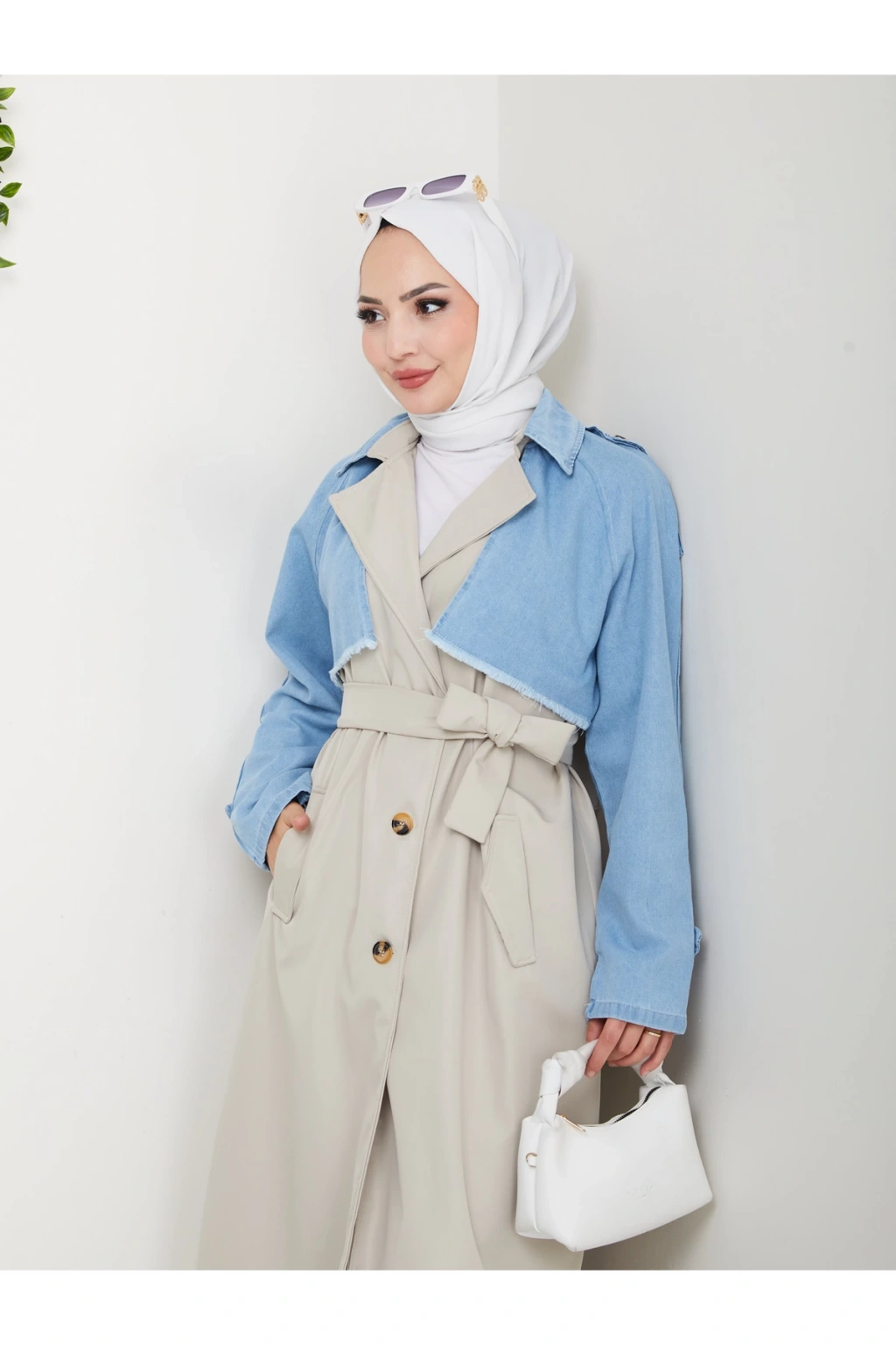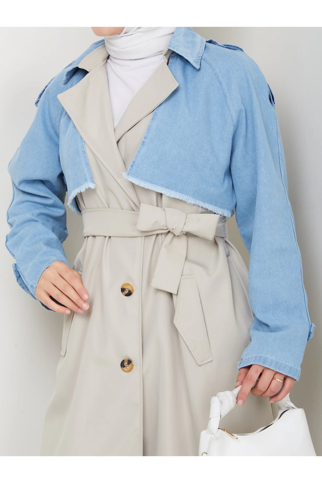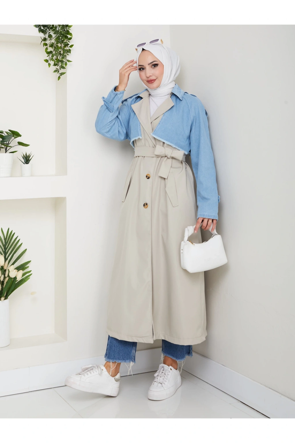 KADIN DENİM ( KOT ) DETAYLI TRENÇKOT ASTARSIZ