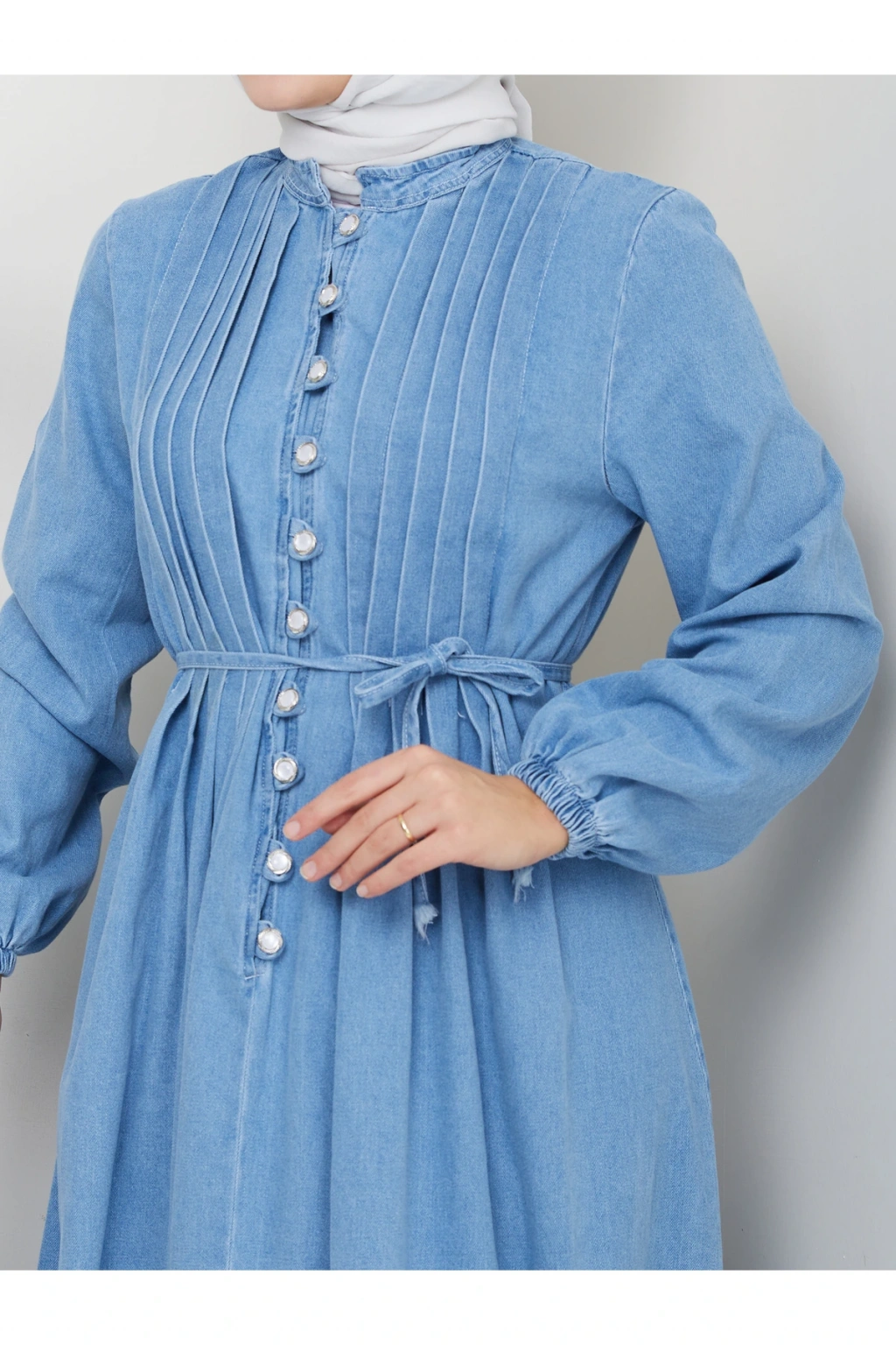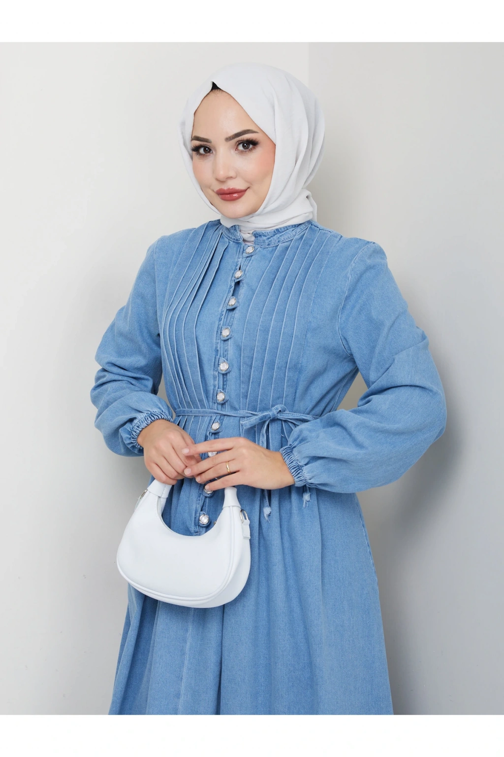 KADIN DRAPELI DÜĞMELI PİLİSELİ KOT ELBİSE