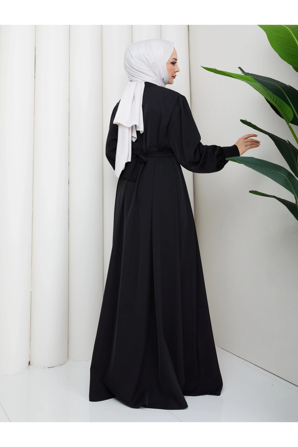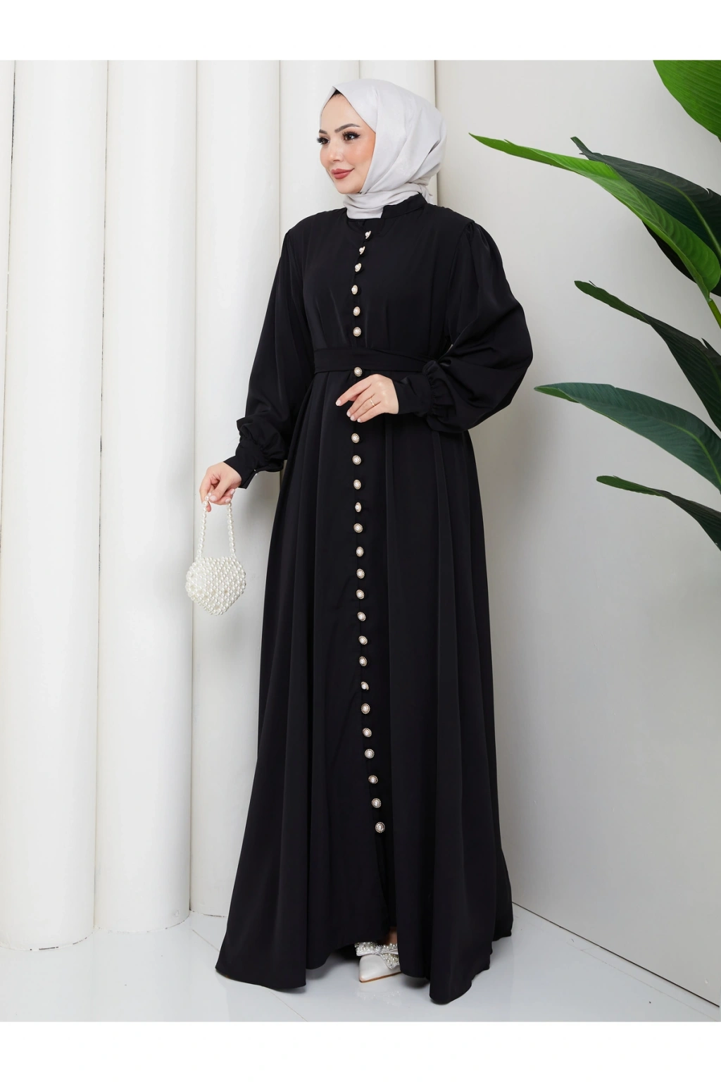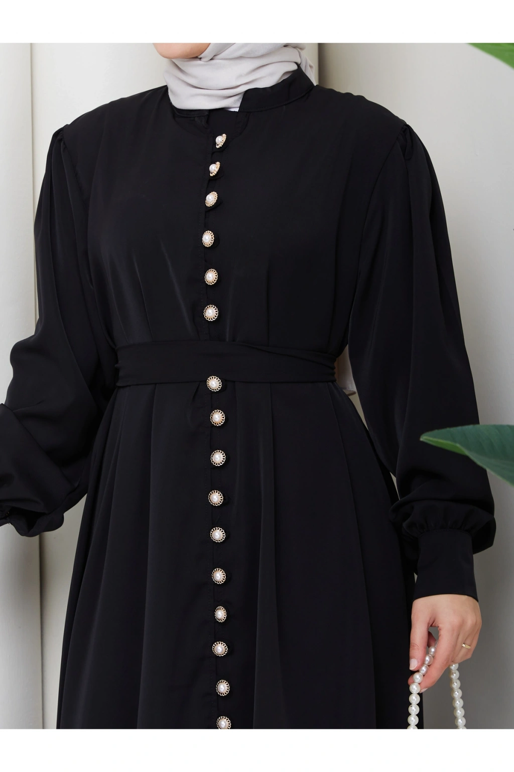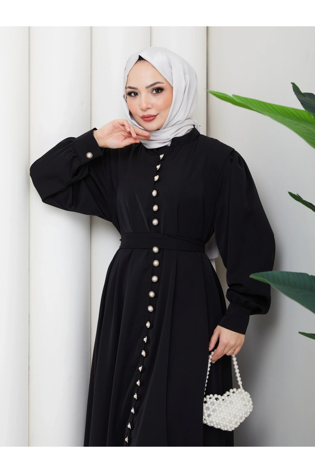 KADIN DÜĞMELE DETAYLI KEMERLİ ELBİSE TESETTÜR