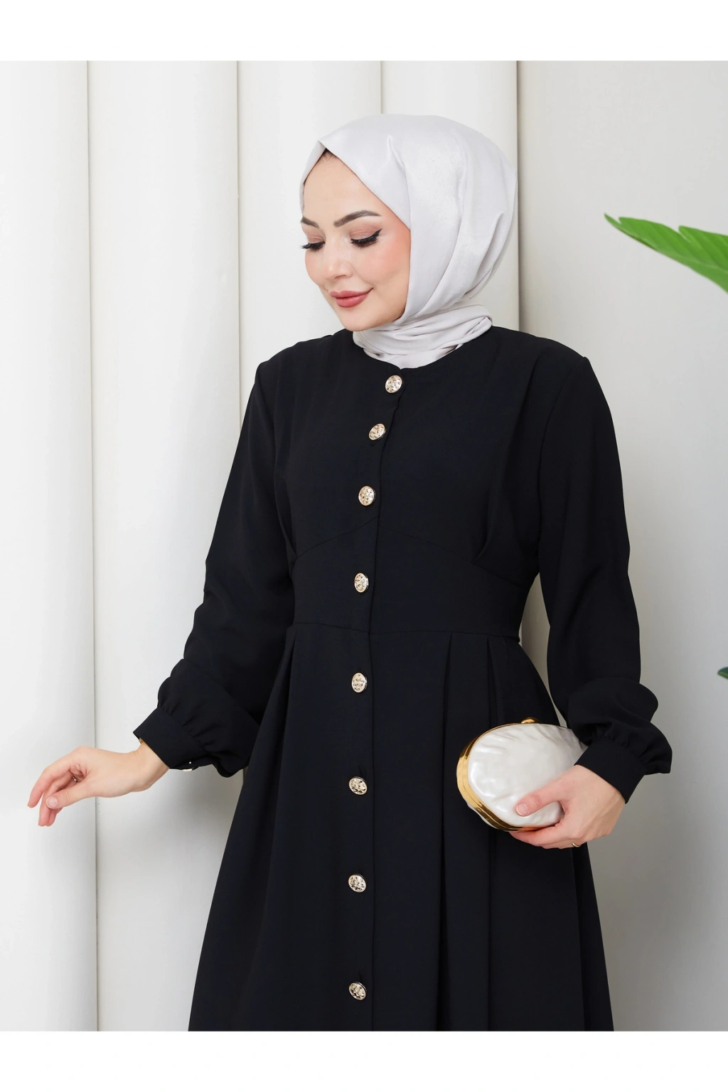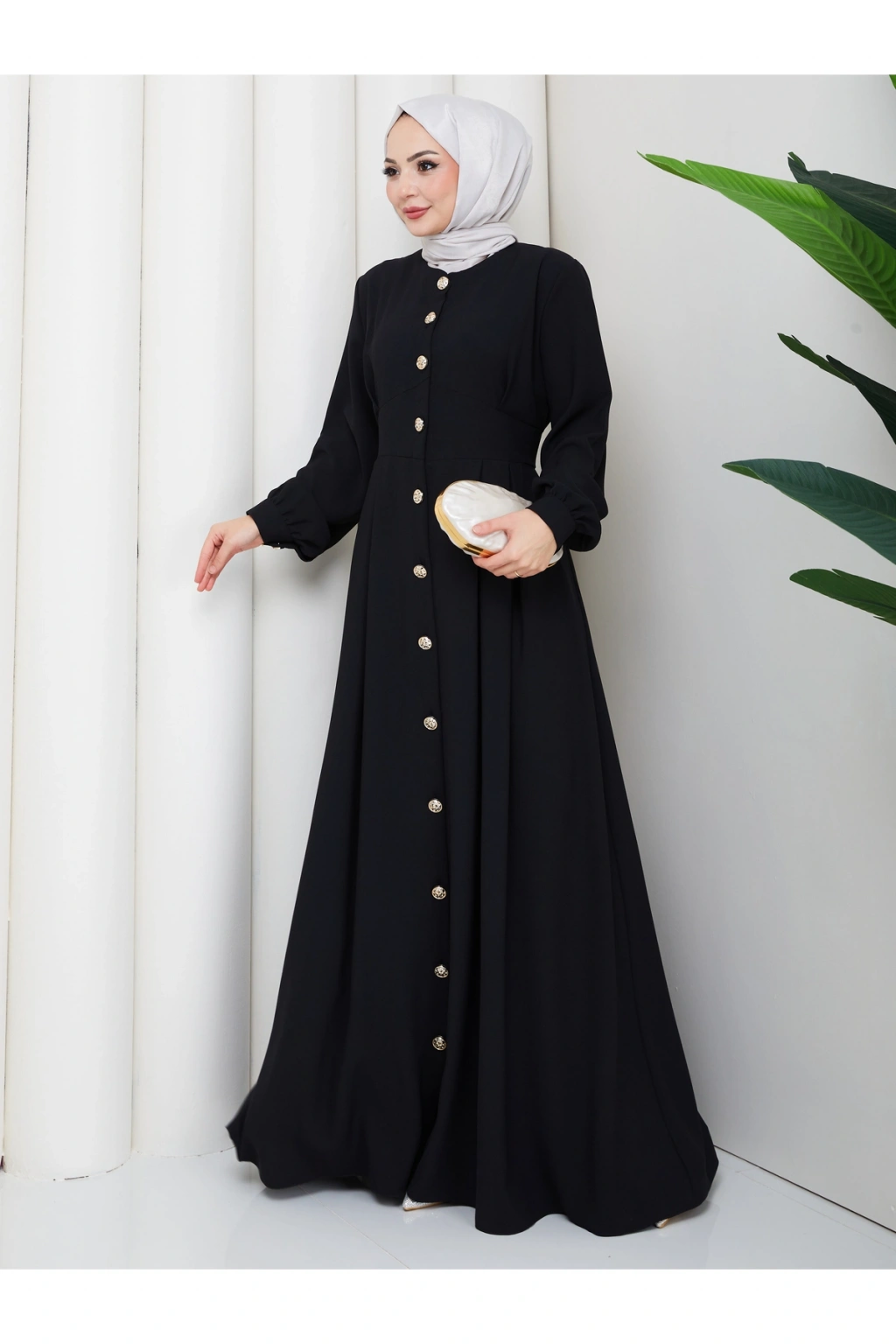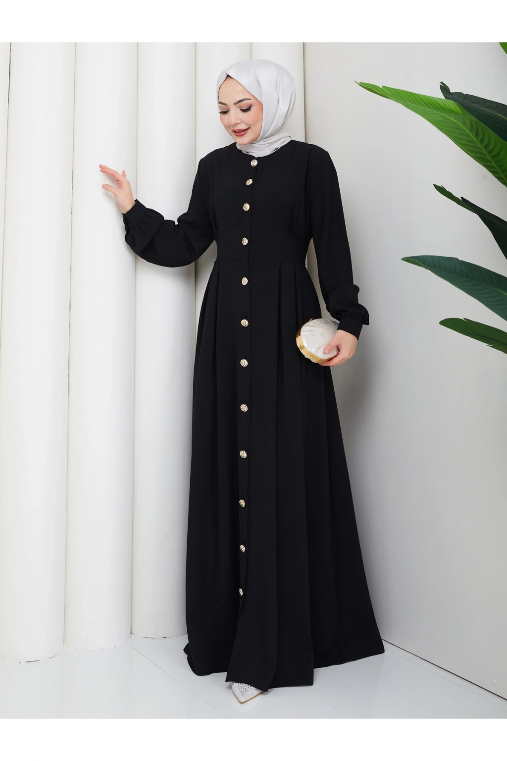 KADIN GOLD DÜĞMELİ KREP ELBİSE TESETTÜR