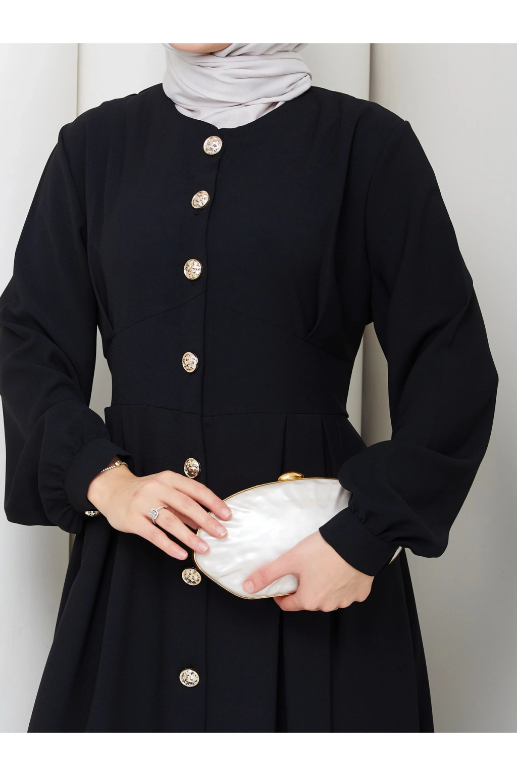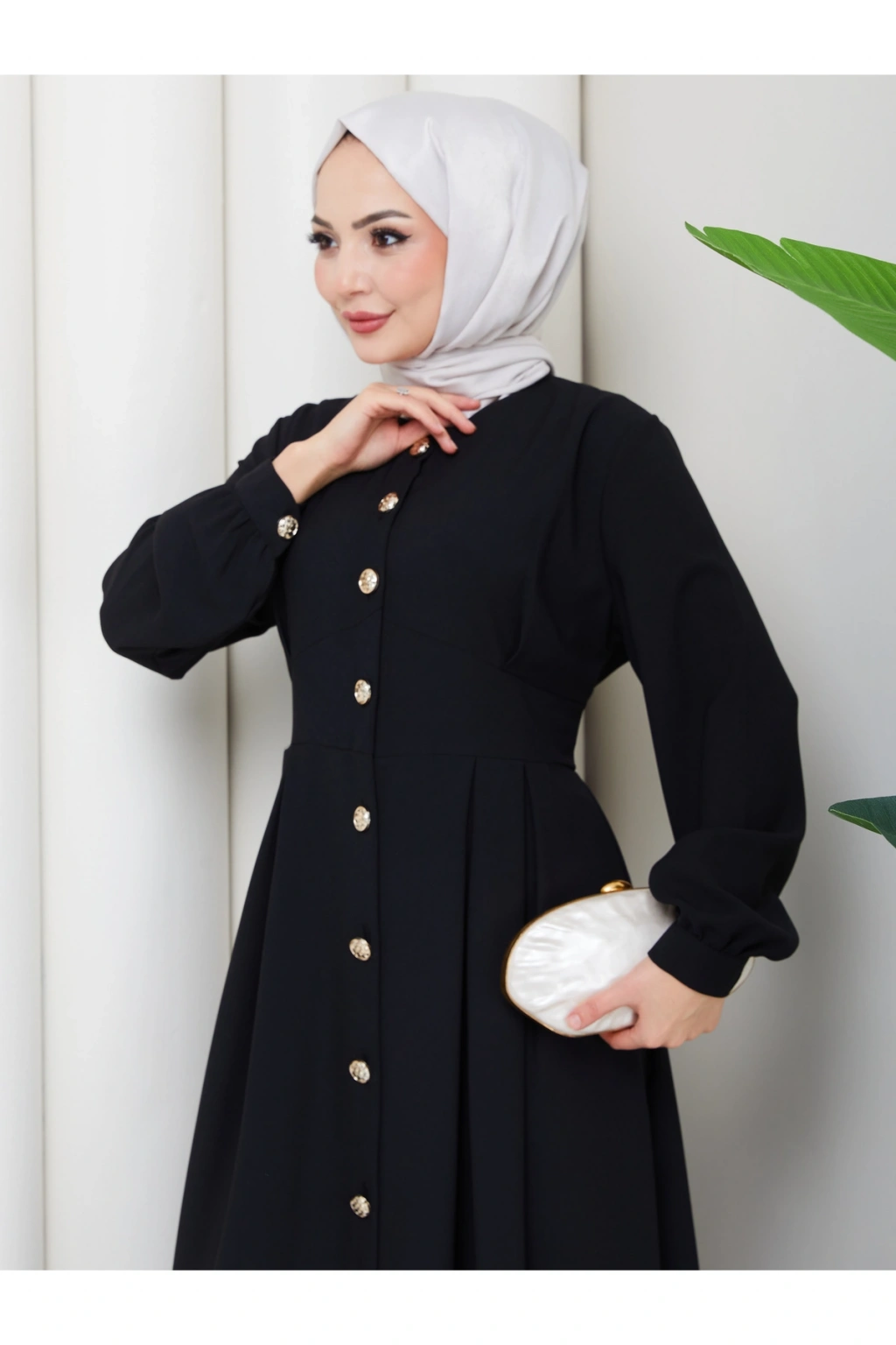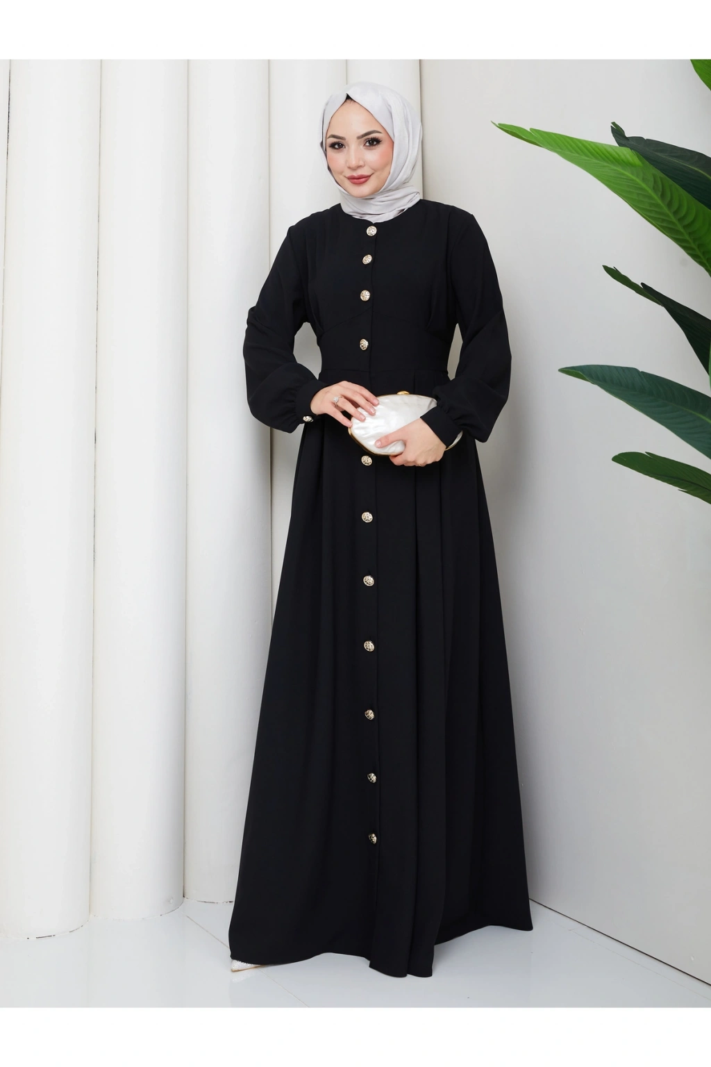 KADIN GOLD DÜĞMELİ KREP ELBİSE TESETTÜR