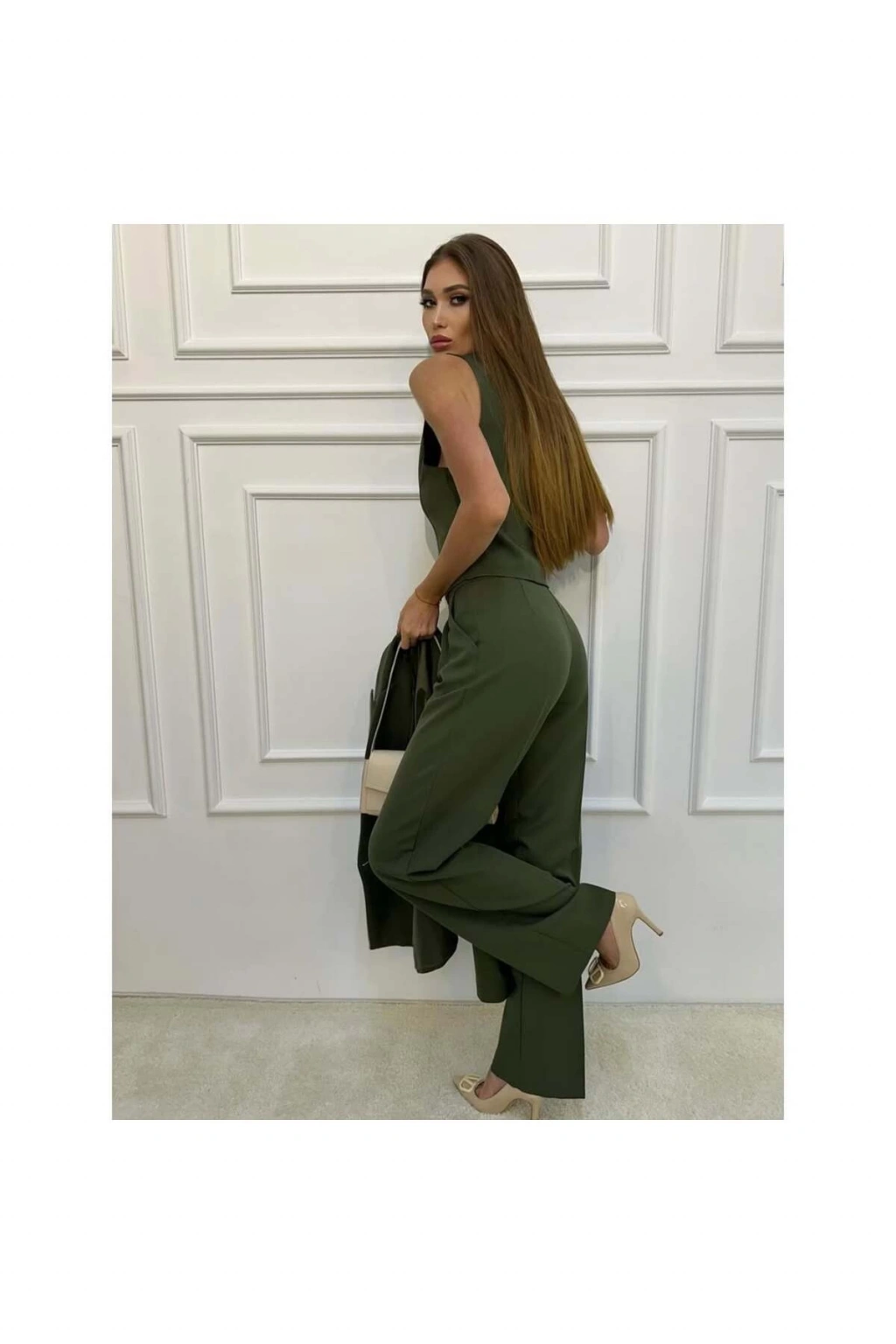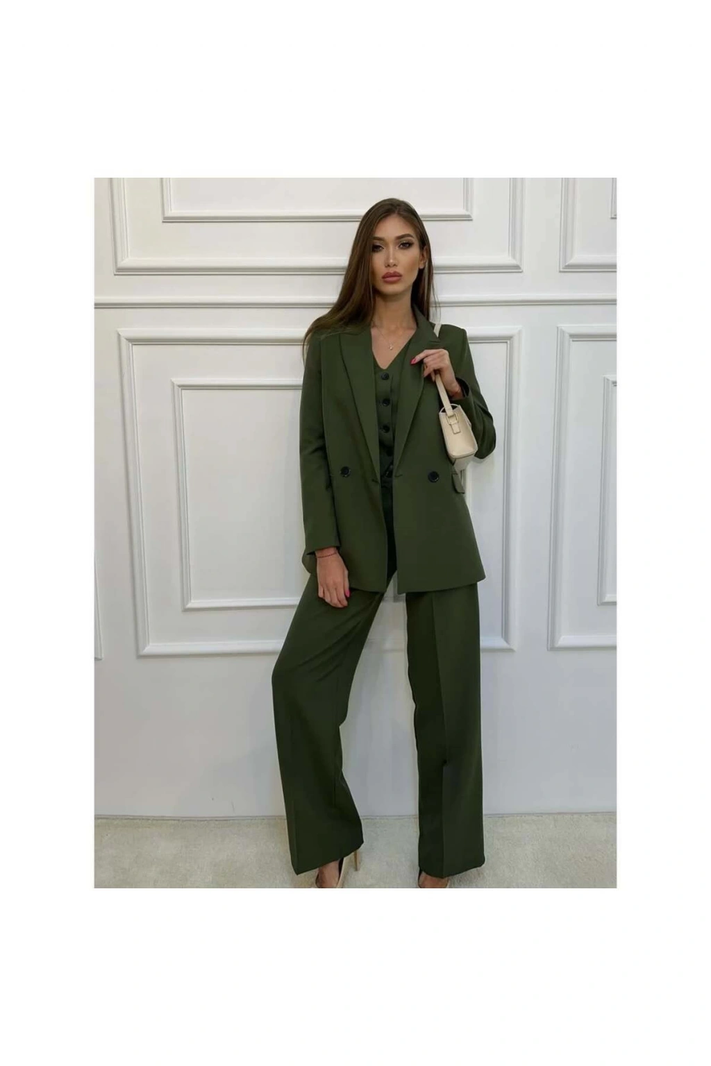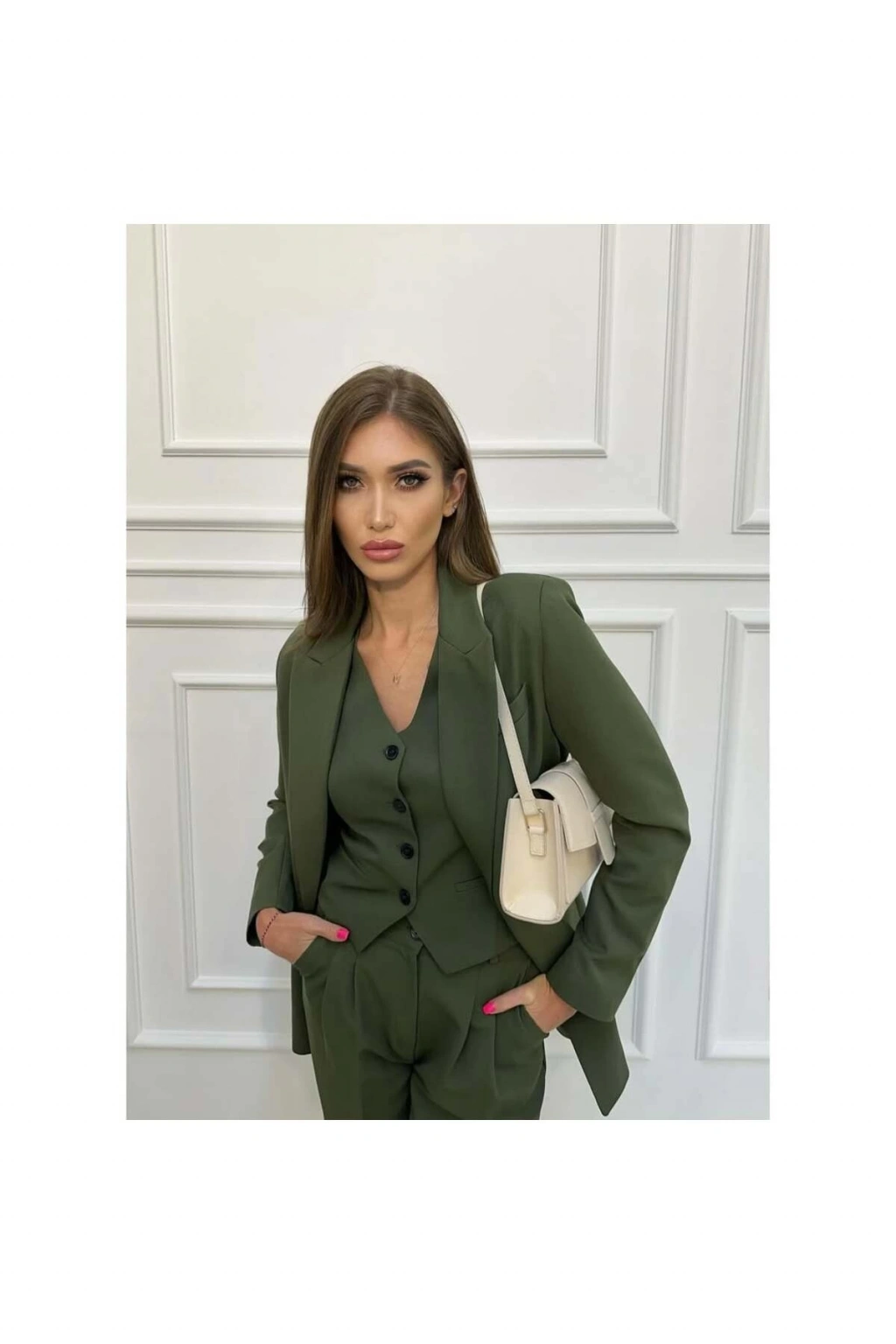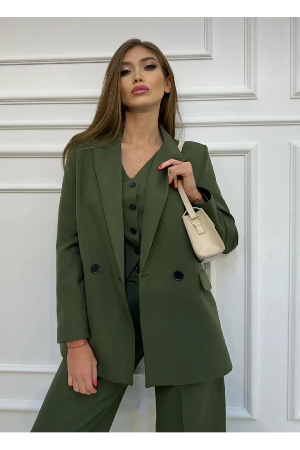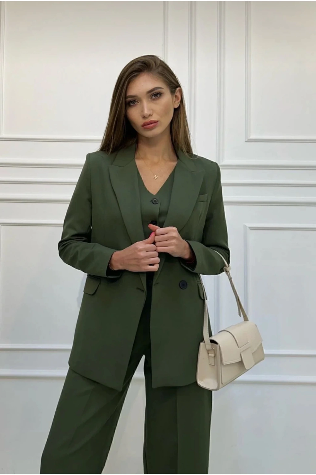 KADIN HAKİ BLAZER CEKET YELEK PANTOLON TAKIM ELBİSE 3LÜ
