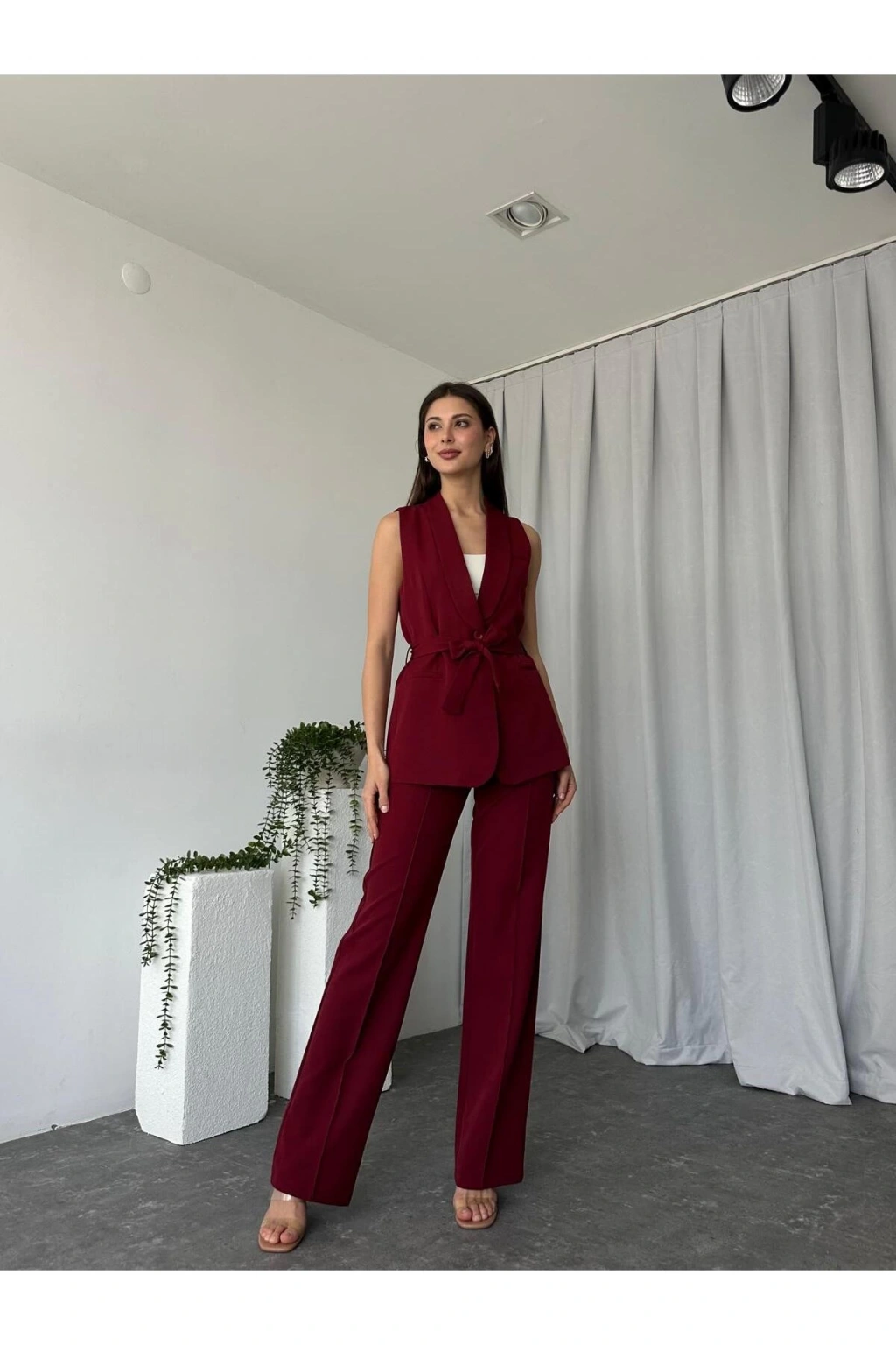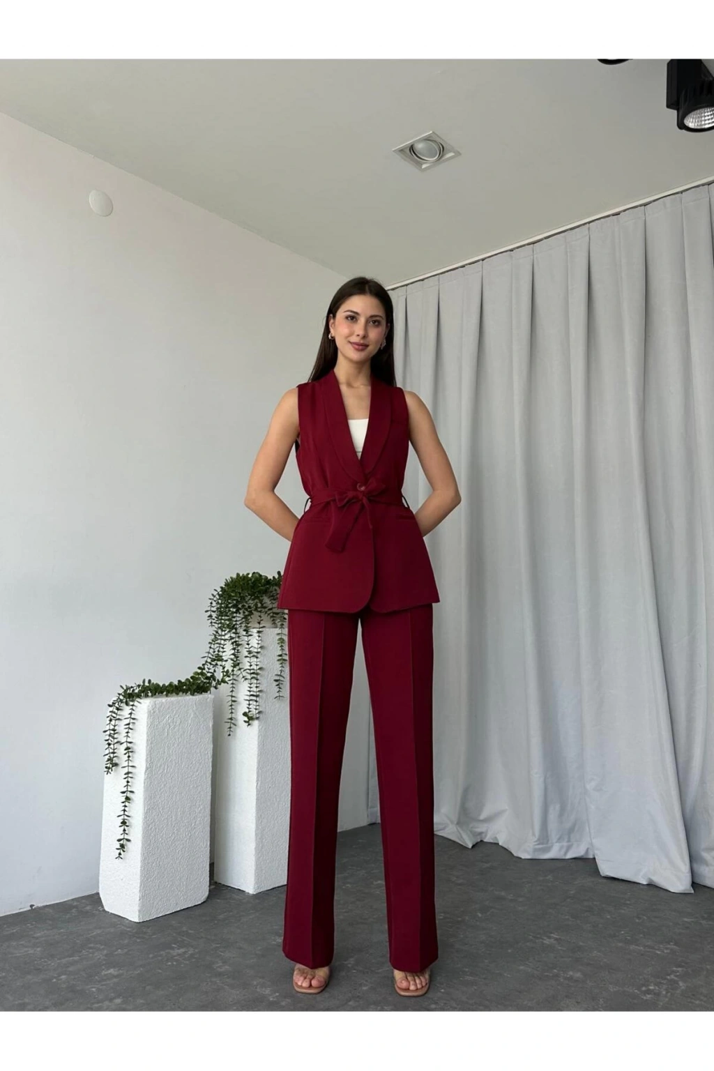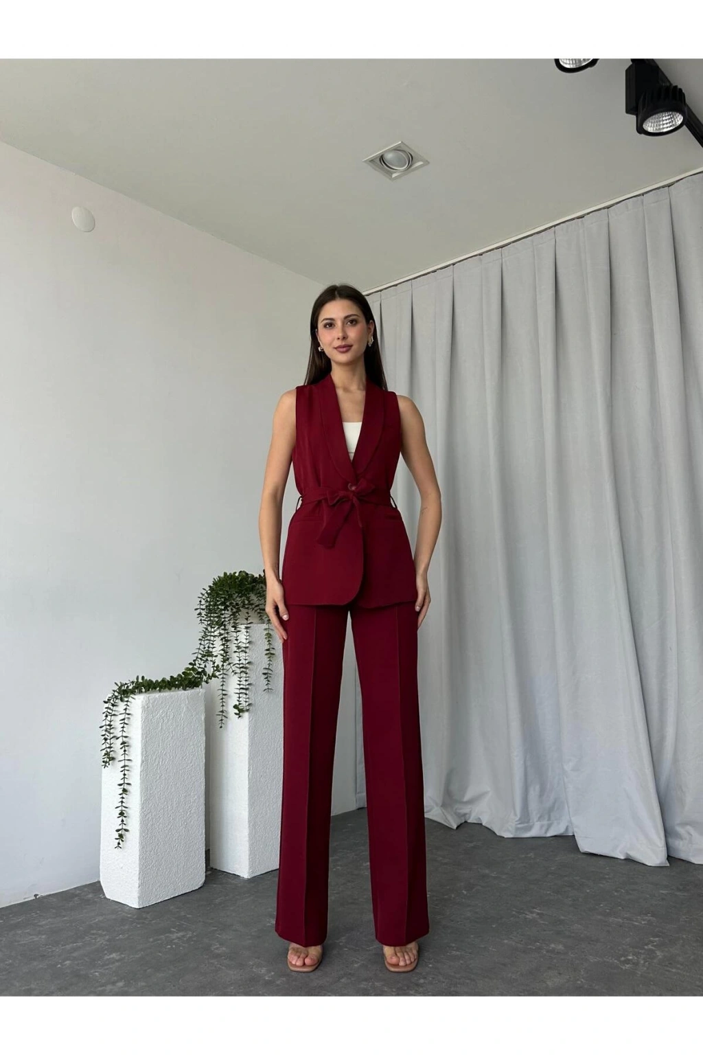KADIN LEİLA YELEK PANTOLON TAKIM ASTARLİ KUŞAKLI