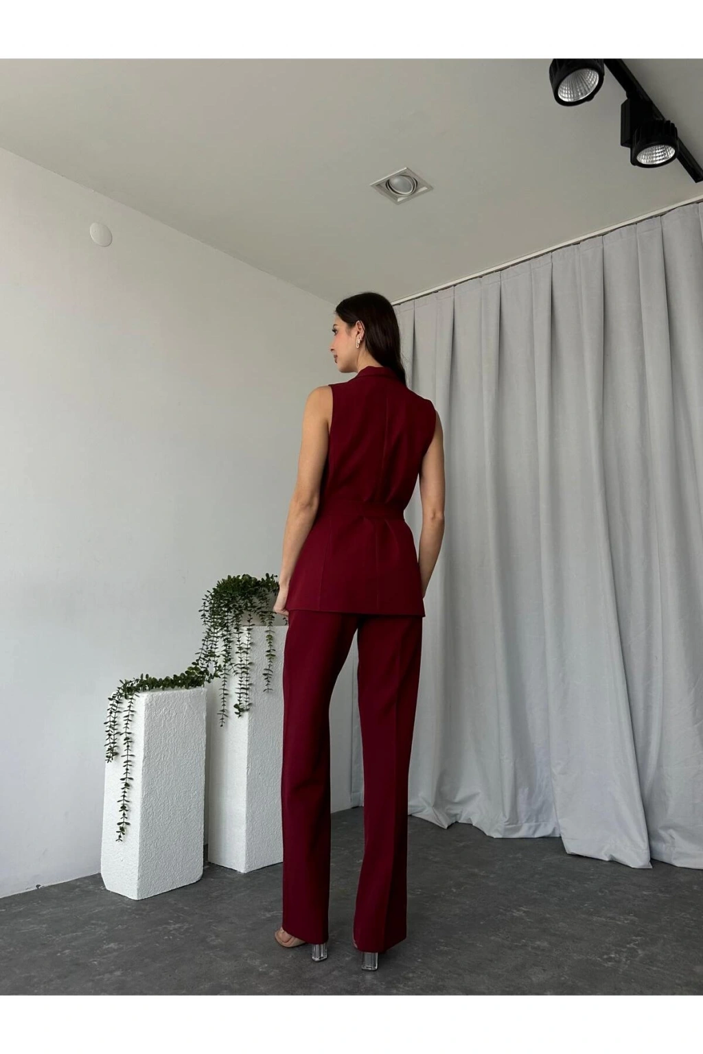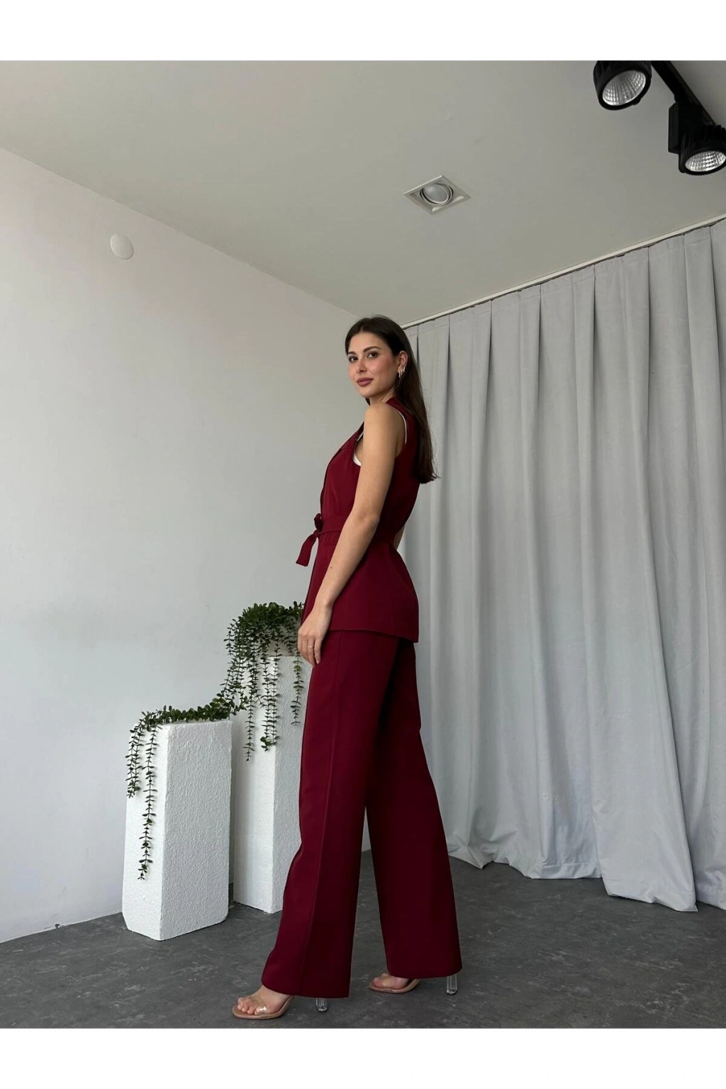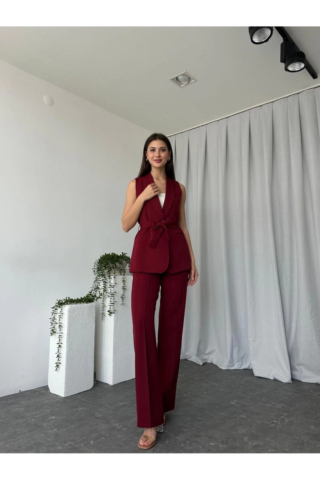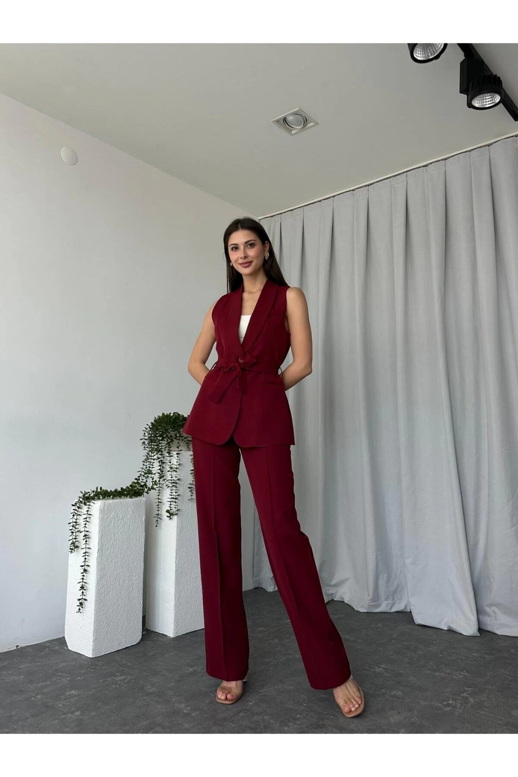 KADIN LEİLA YELEK PANTOLON TAKIM ASTARLİ KUŞAKLI