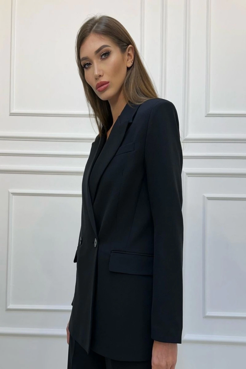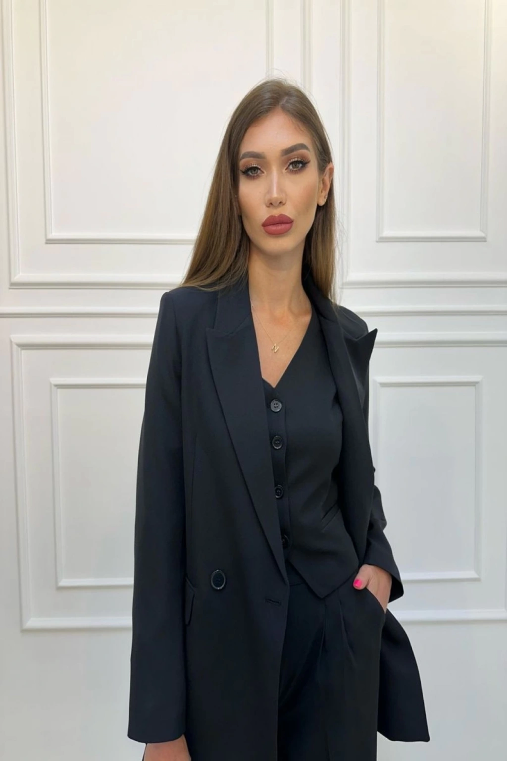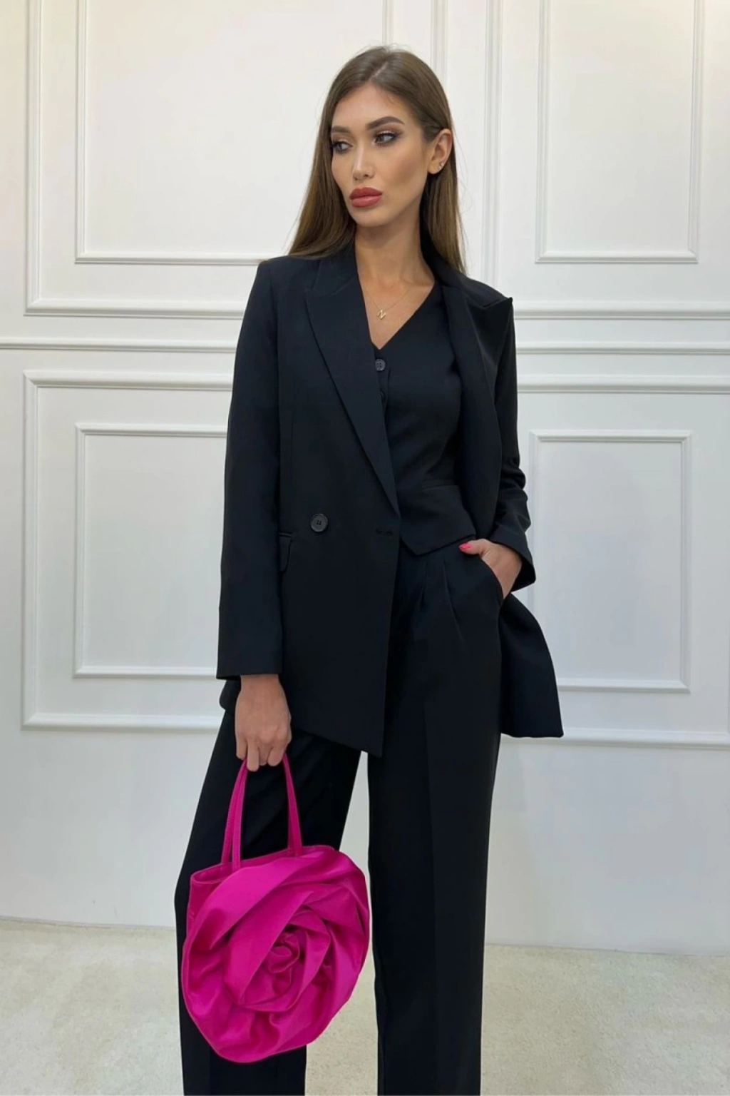 KADIN SİYAH BLAZER CEKET YELEK PANTOLON TAKIM ELBİSE 3LÜ