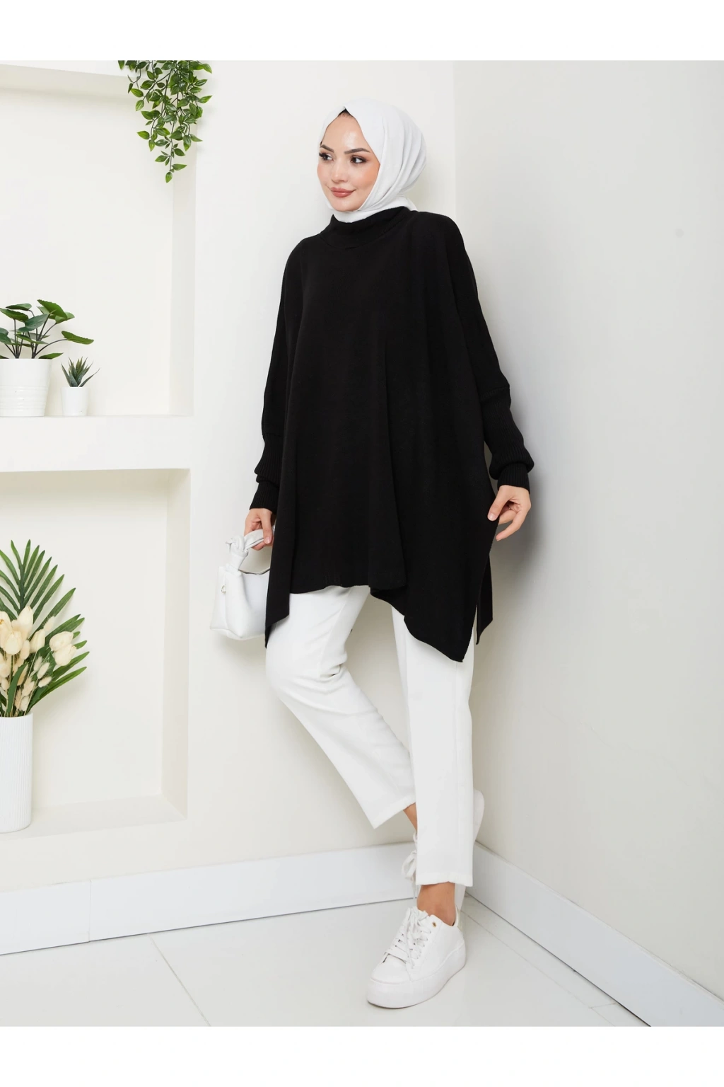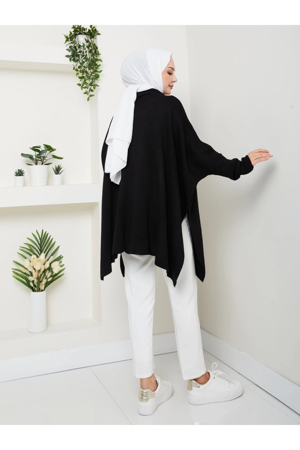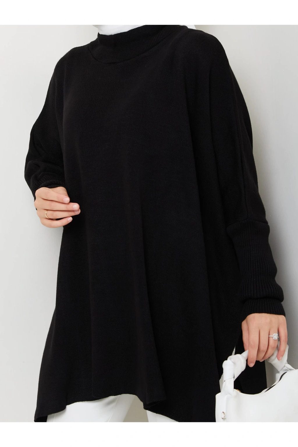 KADIN TESETTÜR TRİKO OVERSİZE KAZAK YANLARI YIRTMAÇLI SİYAH