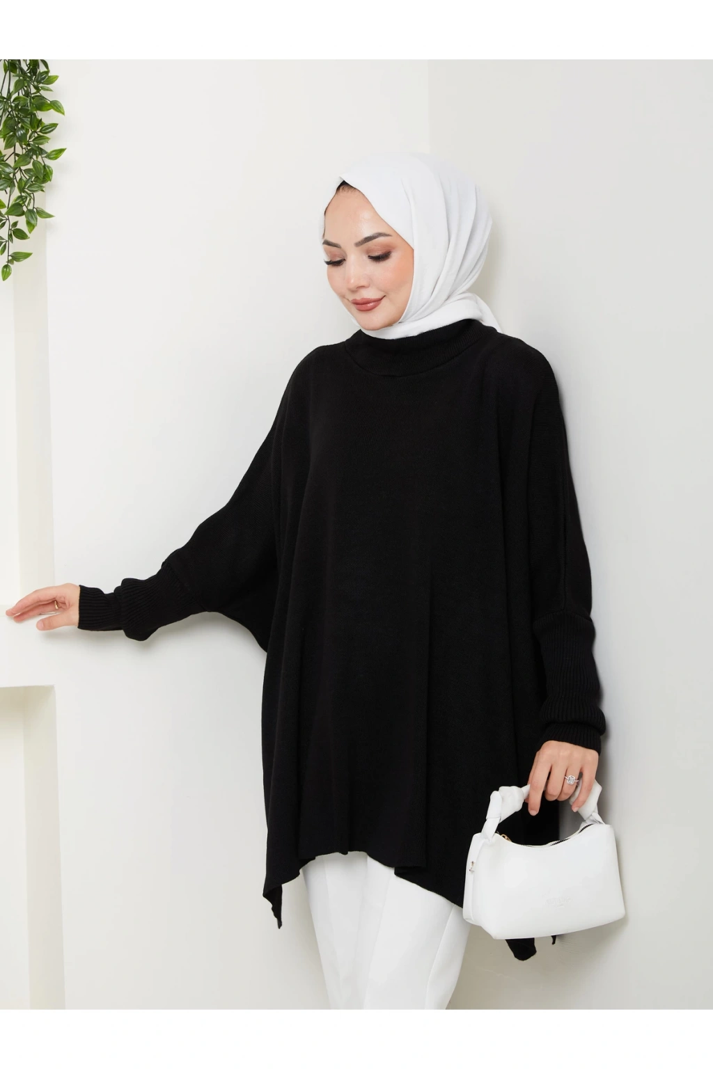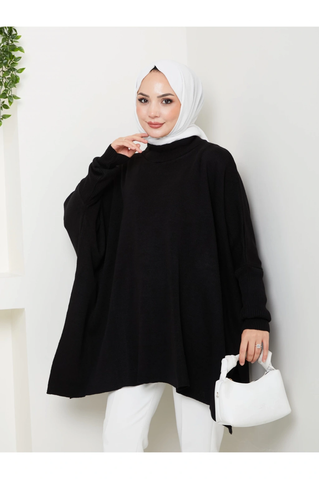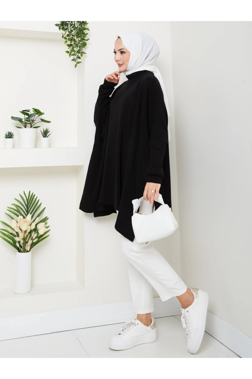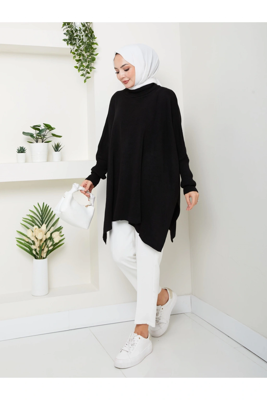 KADIN TESETTÜR TRİKO OVERSİZE KAZAK YANLARI YIRTMAÇLI SİYAH