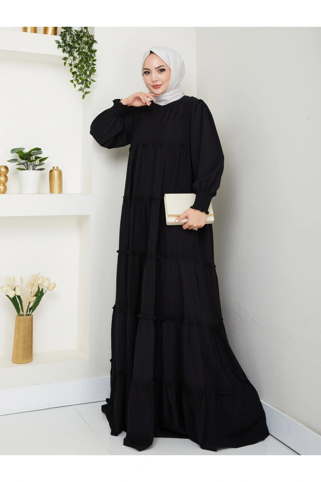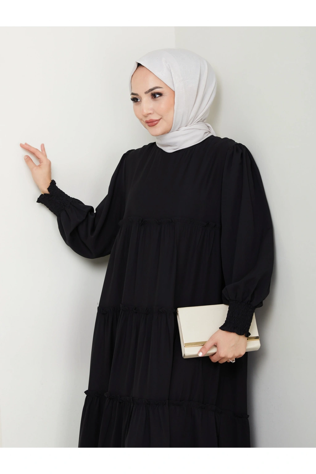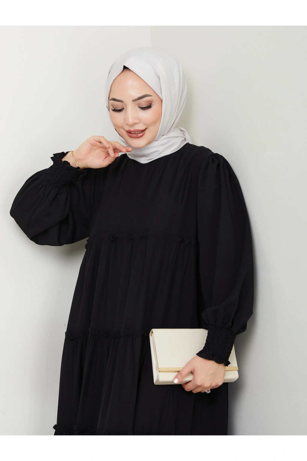 KATLI ELBİSE GİPELİ MANŞET KOLU TESETTÜR ELBİSE