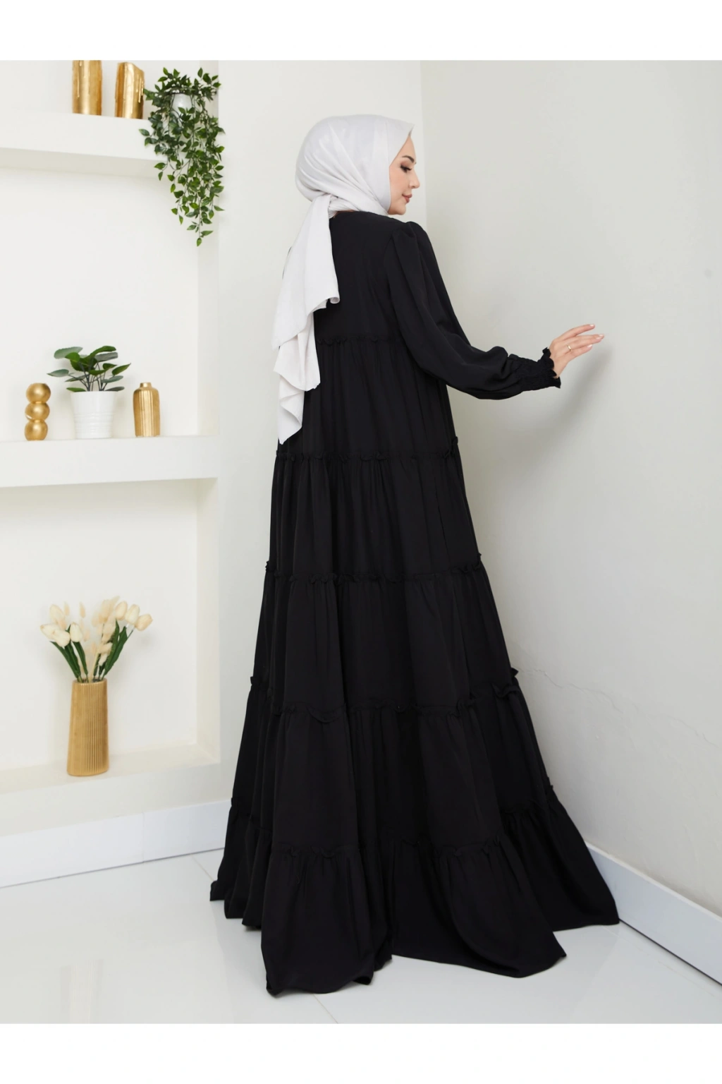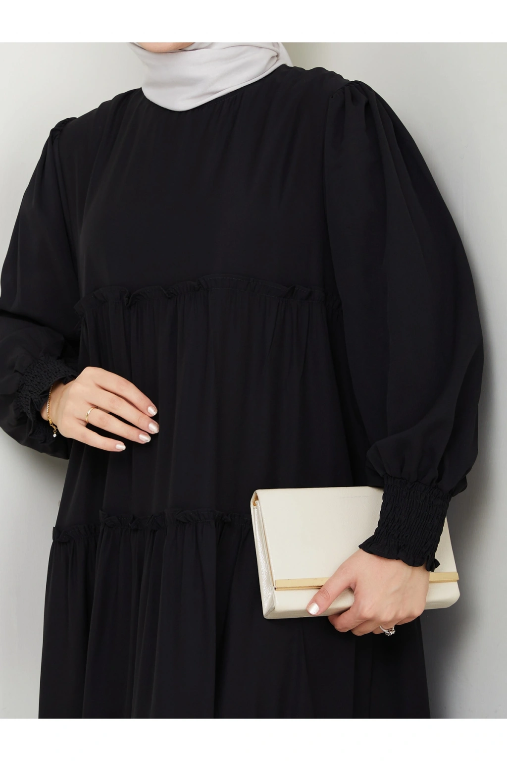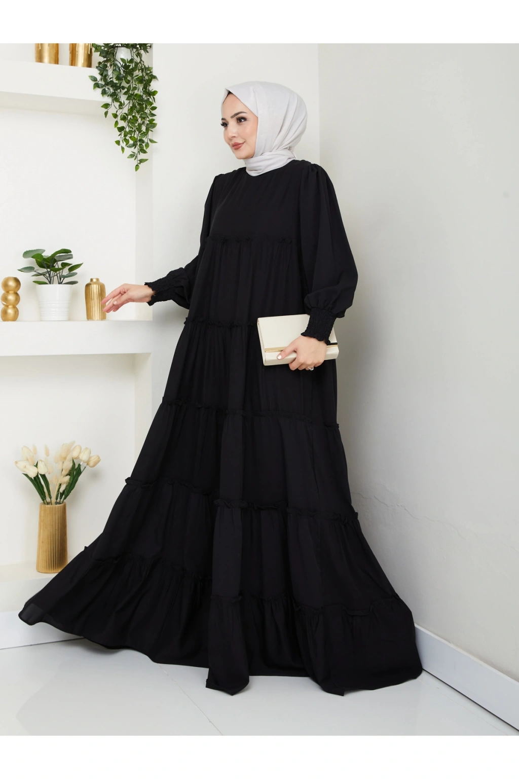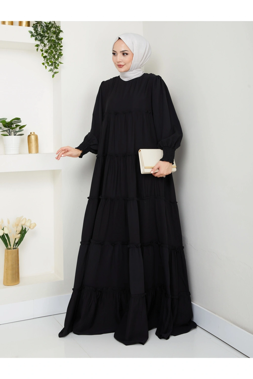 KATLI ELBİSE GİPELİ MANŞET KOLU TESETTÜR ELBİSE