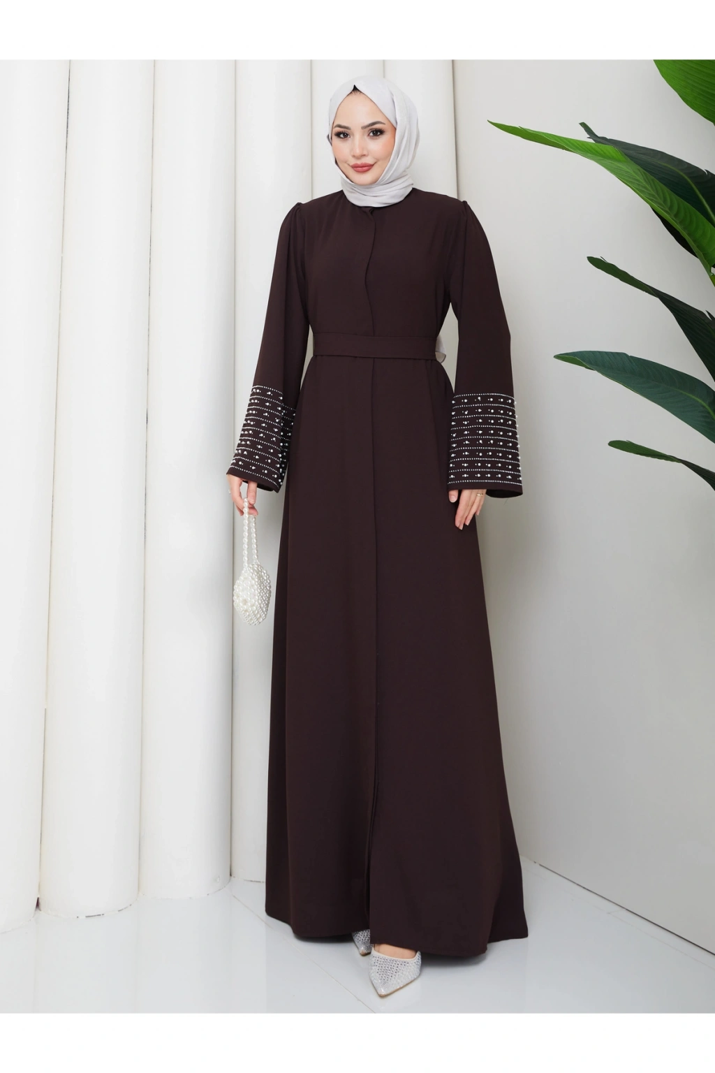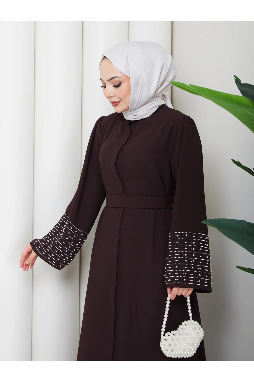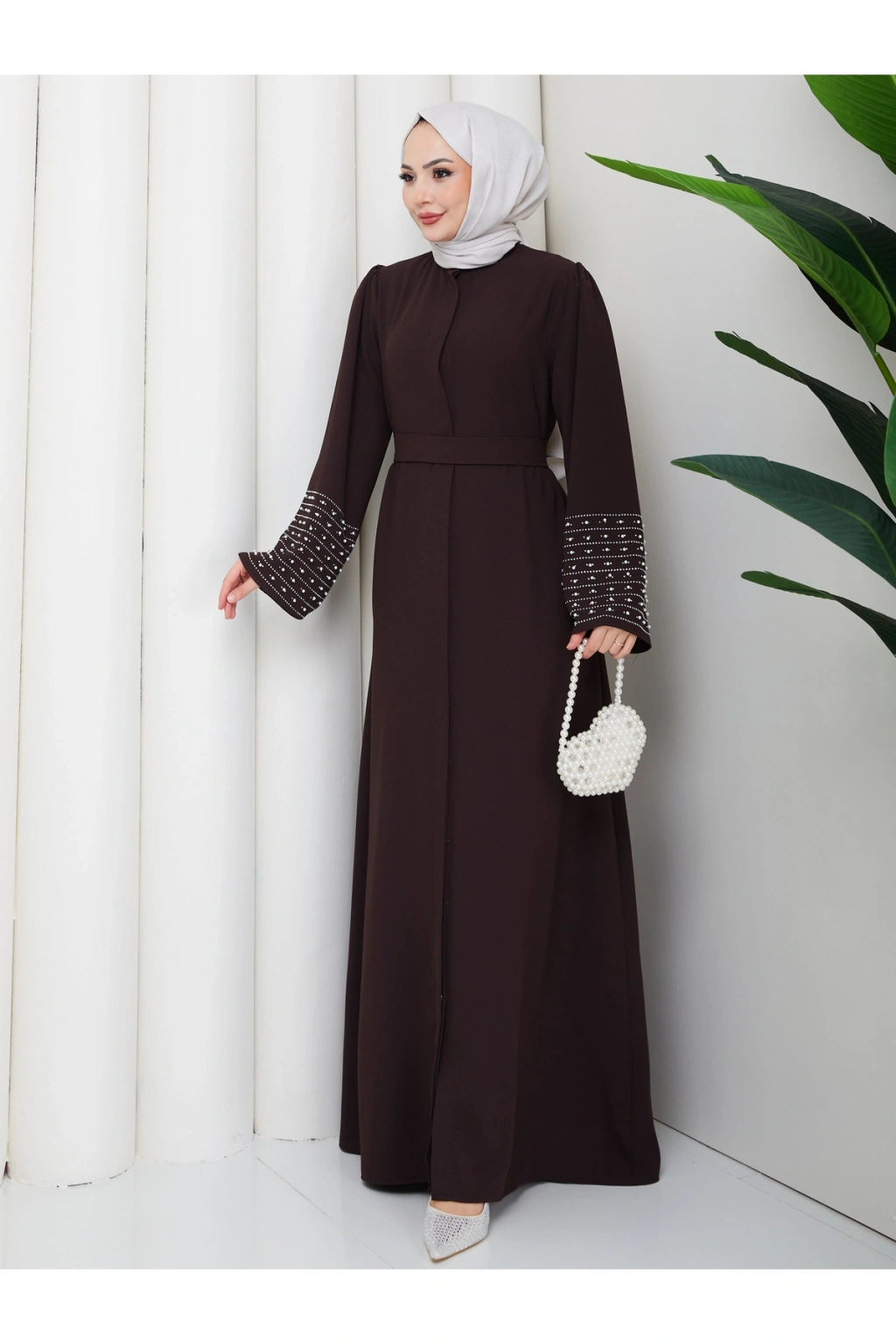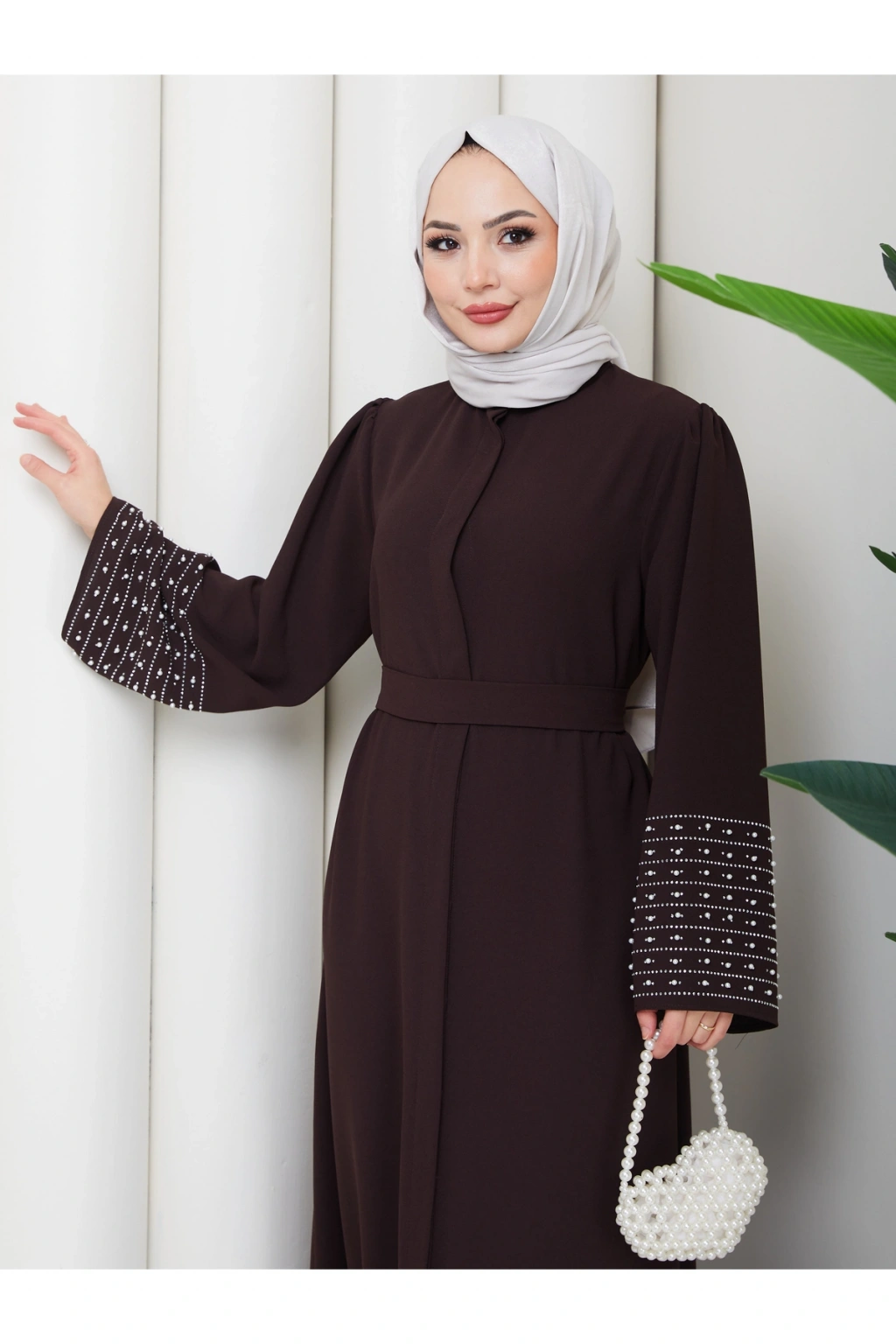 - Rahat ve şık tasarımıyla günlük kullanıma uygun, tesettür giyim koleksiyonunun vazgeçilmezi.; - Full düğme kapama özelliği ile kolay giyilip çıkarılabilir ve pratik kullanım sunar.; - Astarsız yapısıyla hafif ve nefes alabilen bir deneyim sağlar, gün boyu konforunuzdan ödün vermezsiniz.; - İnci ve taş detayları ile zenginleştirilmiş, göz alıcı bir görünüm kazandırır.; - İç göstermeyen kumaşı sayesinde rahatlıkla tercih edilebilir ve şeffaflık endişesi ortadan kalkar.; - Krep dokuma tipi, yumuşak dokunuşu ve dayanıklılığı ile öne çıkar.; - Türkiye'de üretilmiş olup, yerel iş gücüne katkı sağlar.; - 30 derecede yıkanabilme özelliği ile kolay bakım imkanı sunar.; - Uzun kollu tasarımı ile mevsim geçişlerinde ideal koruma sağlar.; - A-line silueti sayesinde vücut hatlarını nazikçe sararak zarif bir duruş sergiler.; - Hakim yaka detayı ile modern ve sofistike bir görünüm elde edilir.; - Yetişkin kadınlar için özel olarak tasarlanmış, her yaş grubuna hitap eden bir stil sunar.; - Standart kol tipi, hareket özgürlüğünüzü kısıtlamadan şıklığınızı tamamlar.; - Düz deseniyle sade ve zamansız bir tarz yaratırken, kahverengi tonuyla kolay kombinlenebilirlik sağlar.; - %85 pamuk ve %15 polyester karışımı materyal bileşeni cildinize nazik dokunuşlar sunarken dayanıklılık kazandırır.;