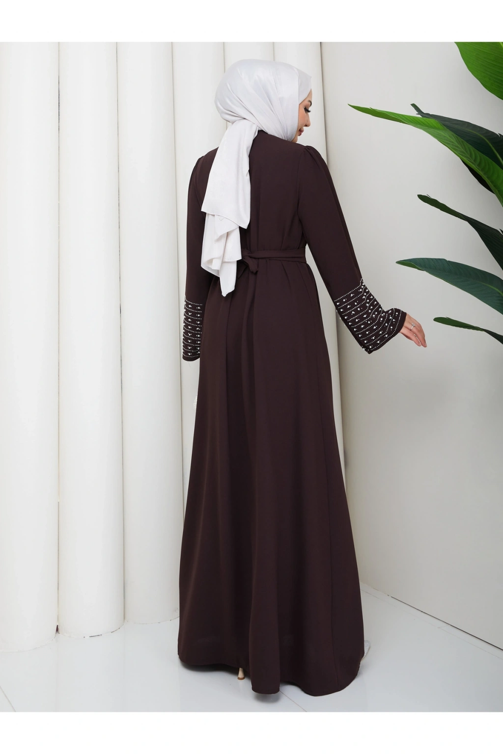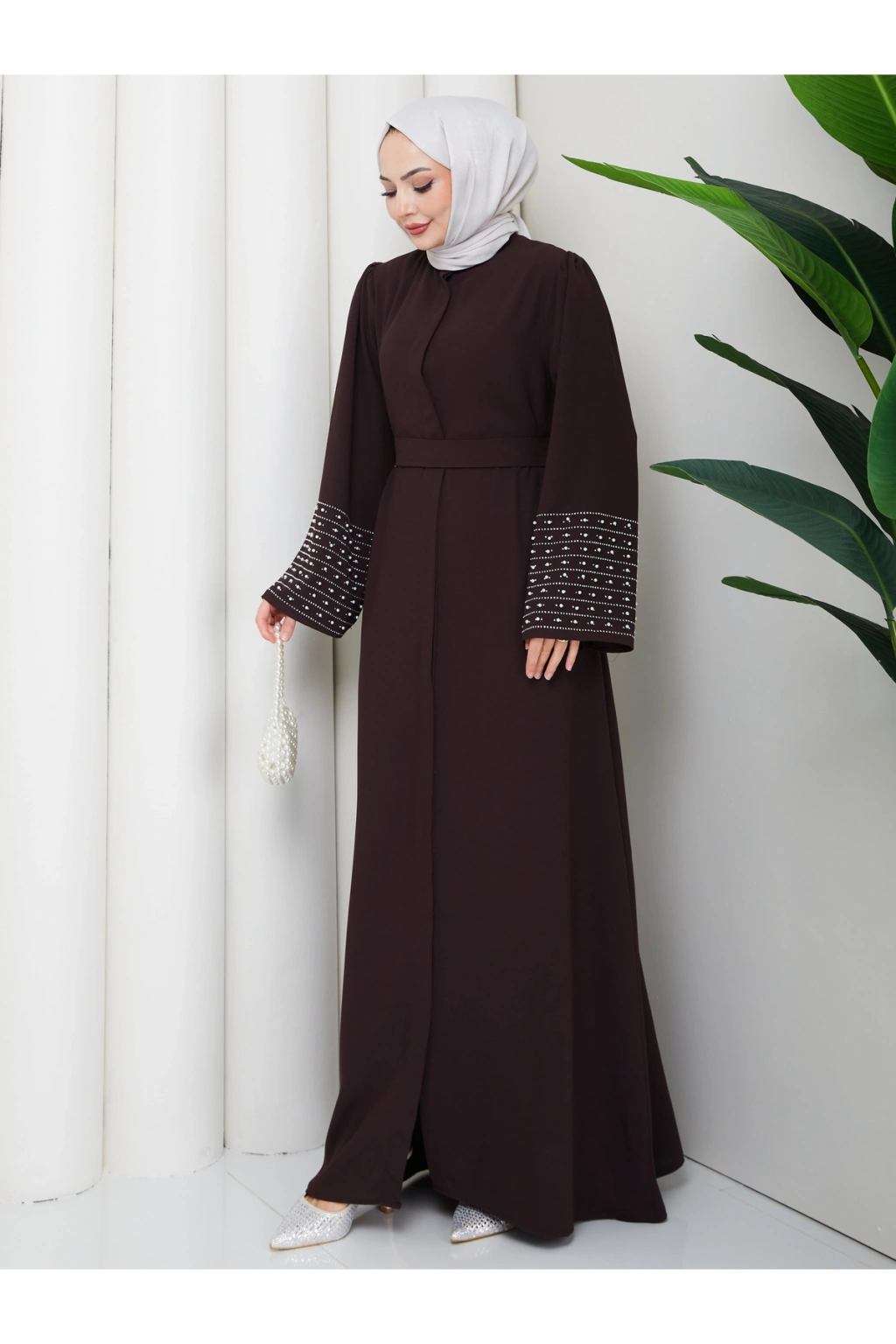 KOLU TAŞLİ ABAYA TESETTÜR GIYIM KADIN FERACE ELBISE