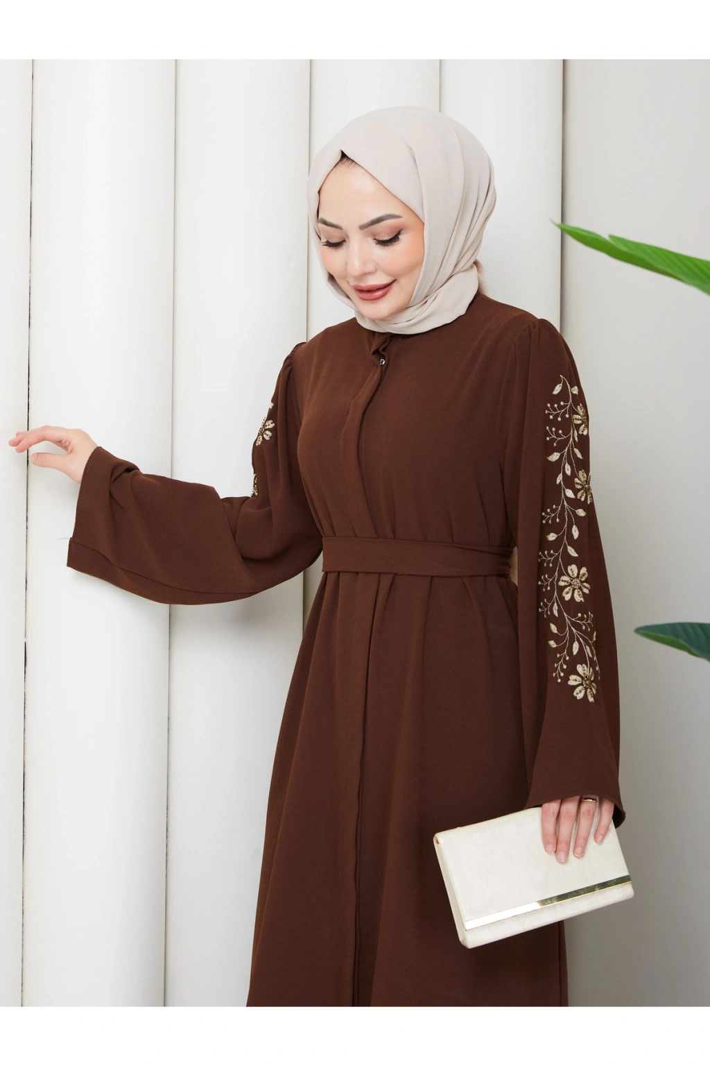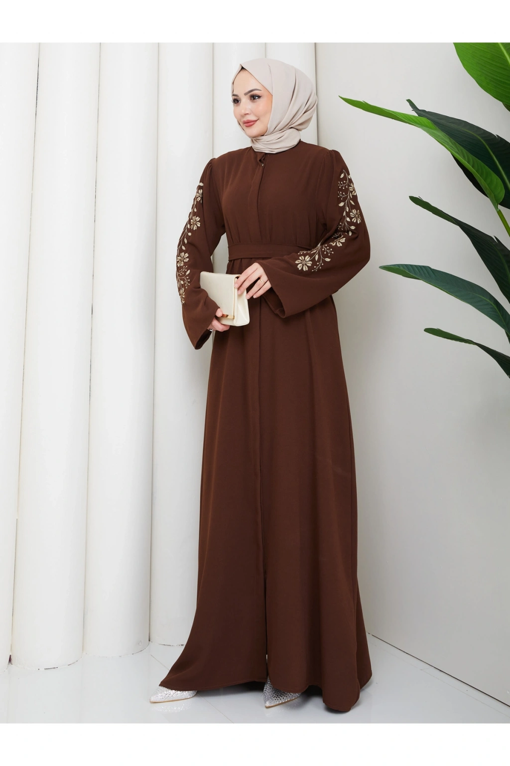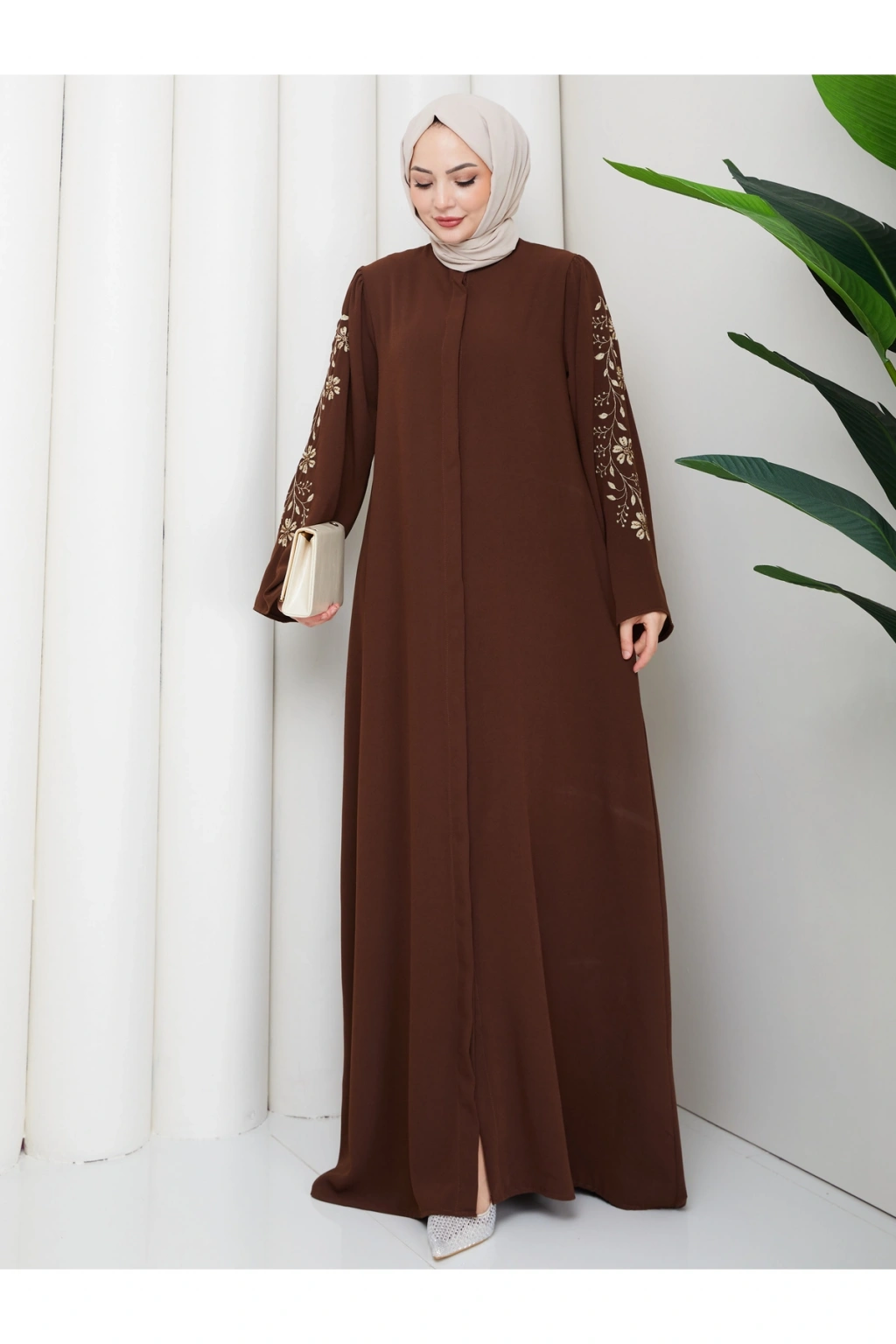 - Rahat ve şık tasarımıyla günlük kullanıma uygun, tesettür giyim koleksiyonunun vazgeçilmezi.; - Full düğme kapama özelliği ile kolay giyilip çıkarılabilir ve pratik kullanım sunar.; - Astarsız yapısıyla hafif ve nefes alabilen bir deneyim sağlar, gün boyu konforunuzdan ödün vermezsiniz.; - İnci ve taş detayları ile zenginleştirilmiş, göz alıcı bir görünüm kazandırır.; - İç göstermeyen kumaşı sayesinde rahatlıkla tercih edilebilir ve şeffaflık endişesi ortadan kalkar.; - Krep dokuma tipi, yumuşak dokunuşu ve dayanıklılığı ile öne çıkar.; - Türkiye'de üretilmiş olup, yerel iş gücüne katkı sağlar.; - 30 derecede yıkanabilme özelliği ile kolay bakım imkanı sunar.; - Uzun kollu tasarımı ile mevsim geçişlerinde ideal koruma sağlar.; - A-line silueti sayesinde vücut hatlarını nazikçe sararak zarif bir duruş sergiler.; - Hakim yaka detayı ile modern ve sofistike bir görünüm elde edilir.; - Yetişkin kadınlar için özel olarak tasarlanmış, her yaş grubuna hitap eden bir stil sunar.; - Standart kol tipi, hareket özgürlüğünüzü kısıtlamadan şıklığınızı tamamlar.; - Düz deseniyle sade ve zamansız bir tarz yaratırken, kahverengi tonuyla kolay kombinlenebilirlik sağlar.; - %85 pamuk ve %15 polyester karışımı materyal bileşeni cildinize nazik dokunuşlar sunarken dayanıklılık kazandırır.;