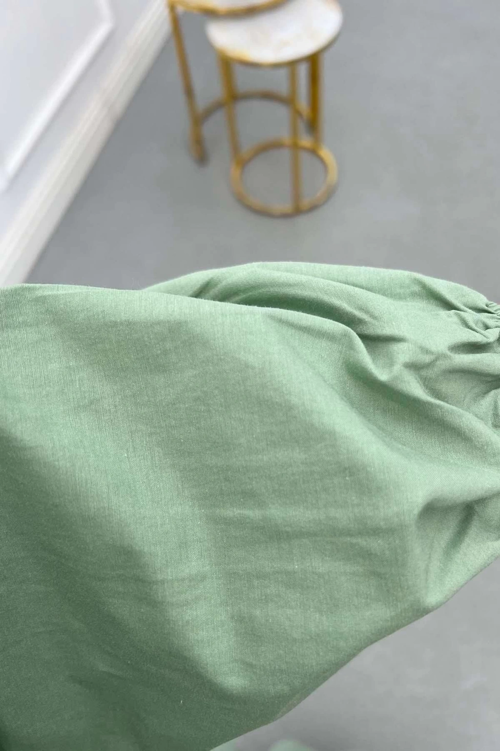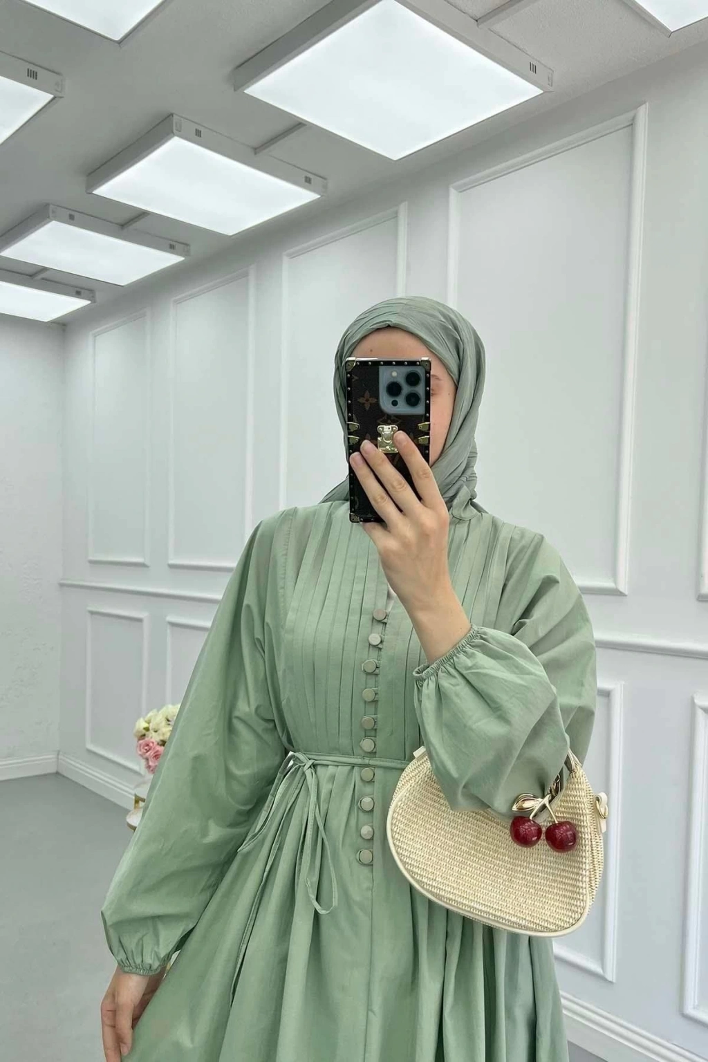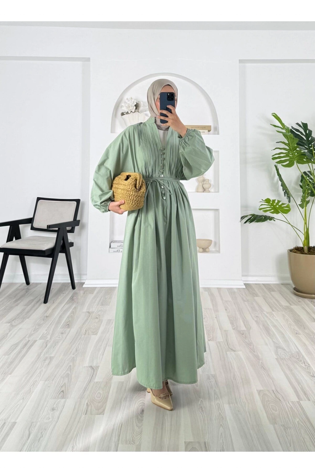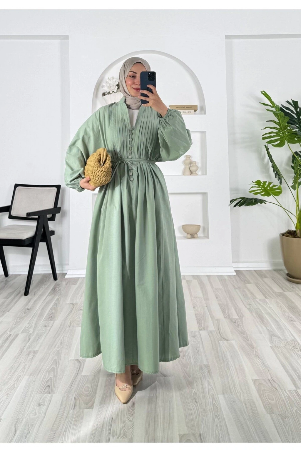 POPLİN KUMAŞ ÖNÜ NERVÜLLÜ BİYELİ ELBİSE MİNT