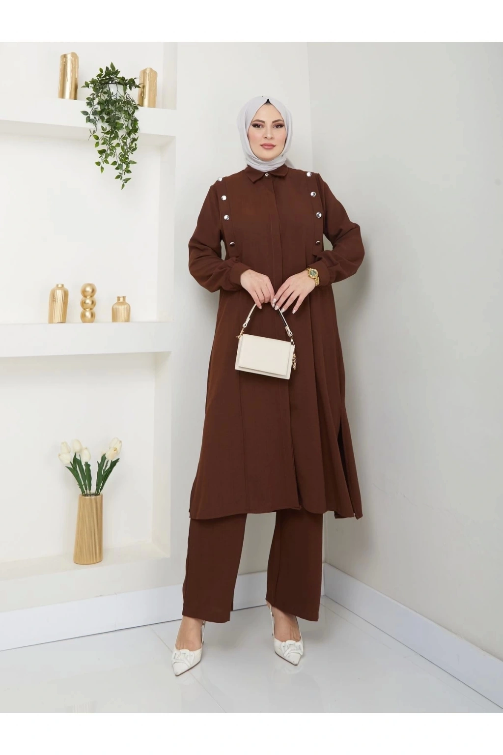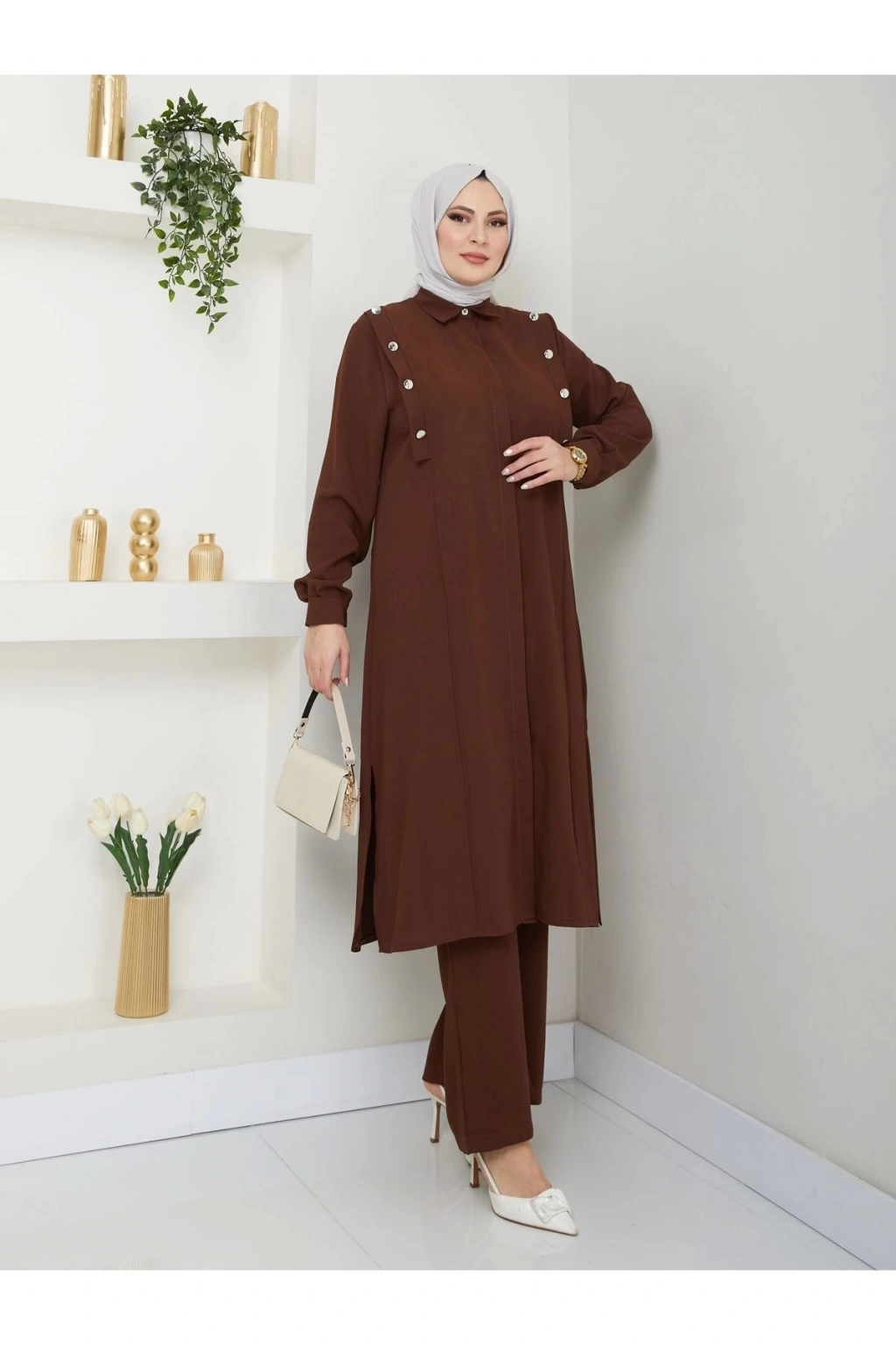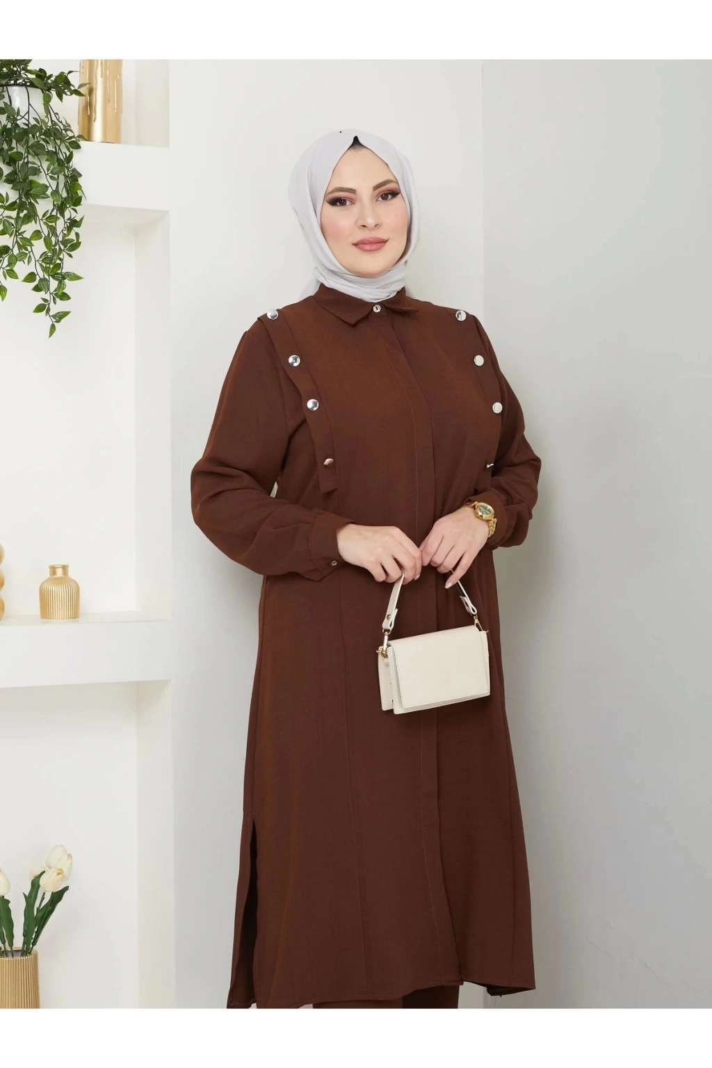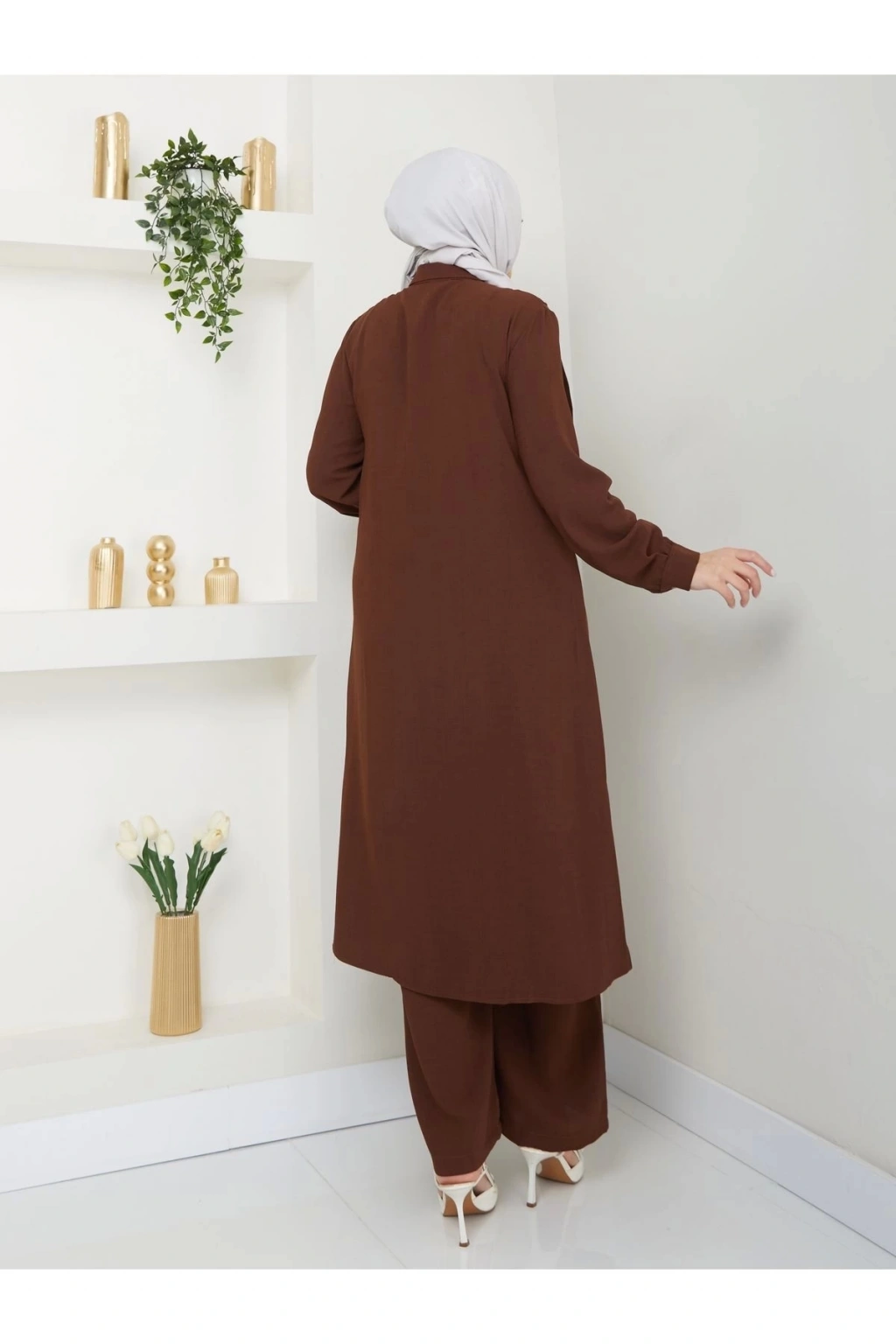 UZUN BOY GÖMLEK TAKIM BATTAL TESETTÜR TAKIM KAHVE
